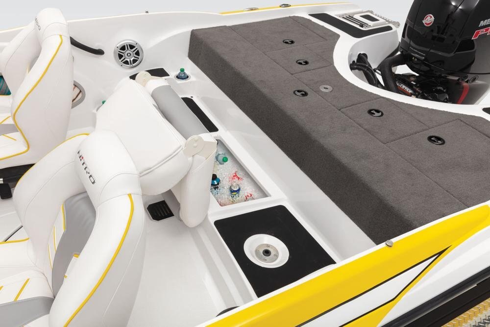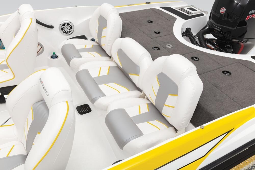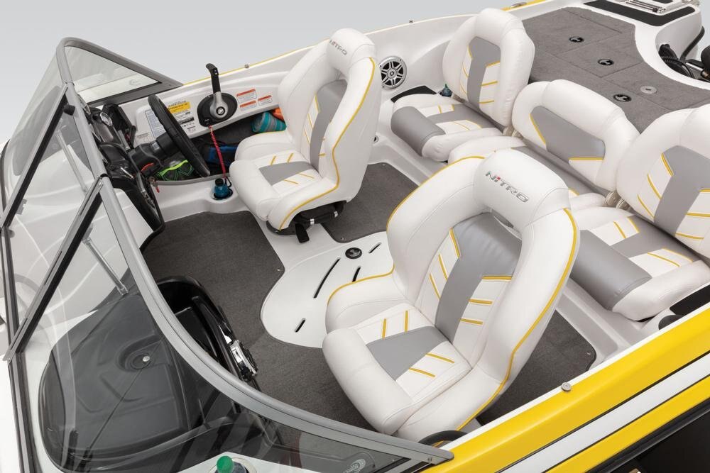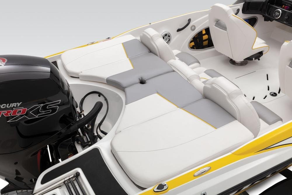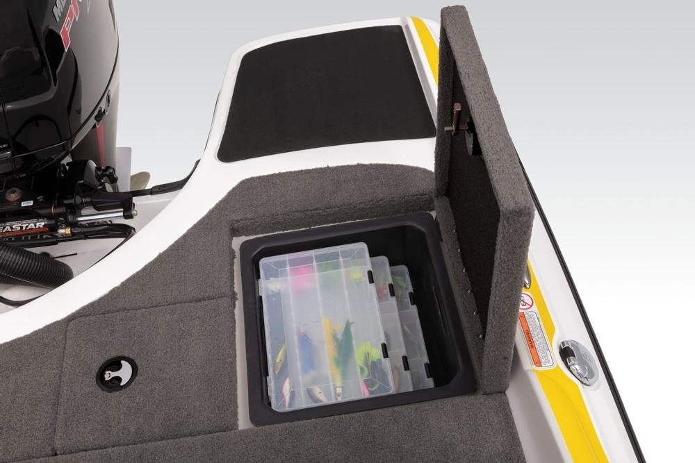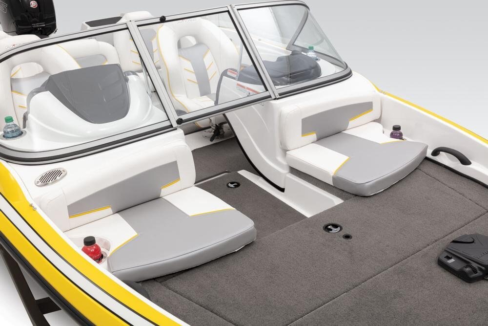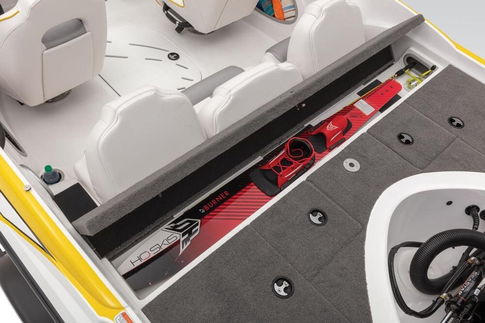 Z-CORE™ seating system w/Force Flex suspension & contoured, rotomolded frame for driver & passenger seats Aft bench seating w/2 convertible, removable fishing seats Bow port & starboard bolsters Forward in-floor rod locker w/organizer Midship in-floor wakeboard/ski storage 44-qt. (41.64 L) insulated cooler below aft seat Full-width, lockable rod/ski storage in aft deck 2 aft storage compartments w/drop-in boxes Insulated aluminum lids w/welded corners 16-oz. (.45 kg) marine-grade cut-pile carpet w/edging Lockable latches