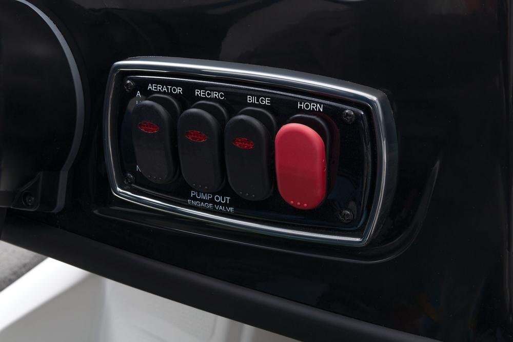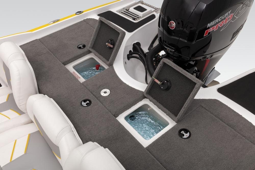 Aft 16-gal. (60.57 L) rotomolded & aerated livewell w/timer, pump-out system & rounded corners 500 GPH (1,892.71 LPH) aerator/fill pump 750 GPH (2,839.06 LPH) recirculator/pump-out pump Insulated aluminum lids w/welded corners