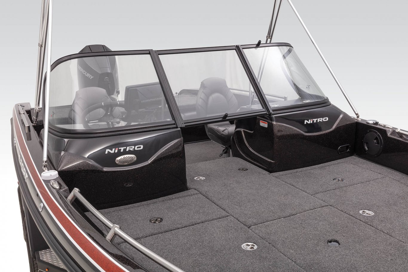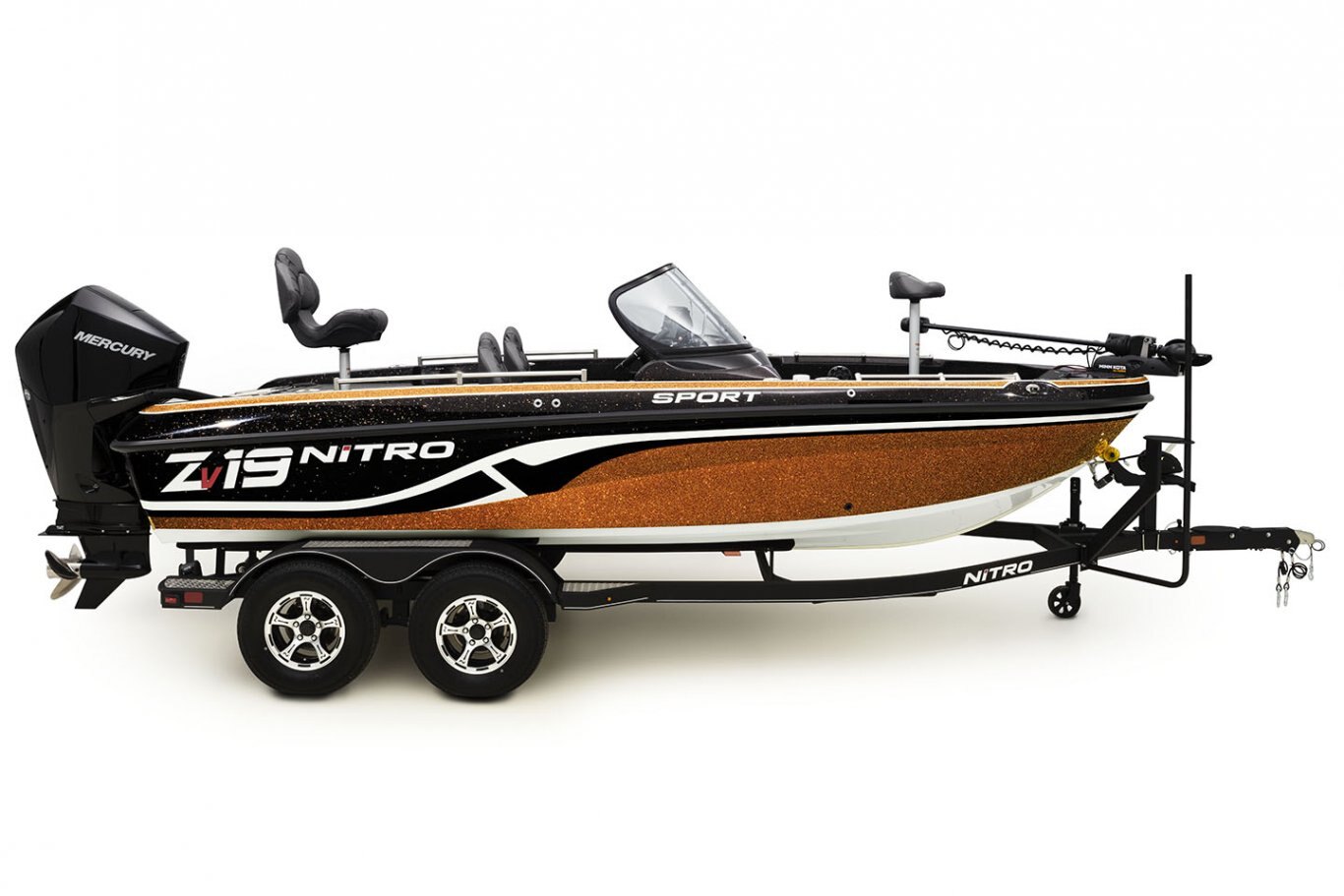 The NITRO® ZV19 Sport Pro comes standard with a Bimini top, dual jump seats and ski tow pylon. In addition, the deep, comfortable interior keeps crew young, old and everyone in between safe and secure while cruising or fishing. The aggressive Deep V hull smoothly slices through the chop on big lakes, and its wide beam provides plenty of stability and space for six. It also sports a plethora of fishing features that will please the pike, muskie, bass, or walleye angler, and ample storage throughout that holds all the gear you need.