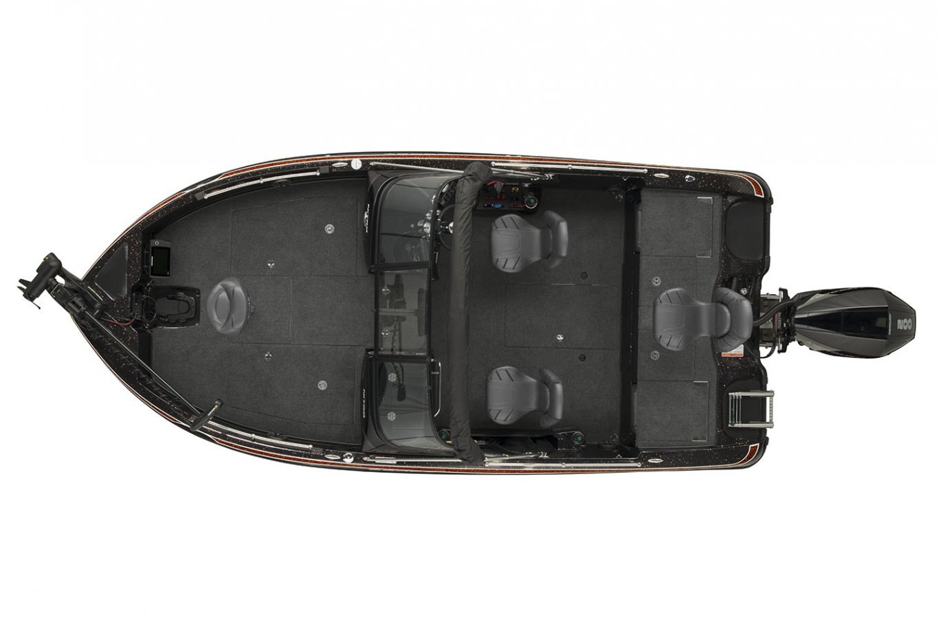 Aggressive Deep V performance hull w/lifting strakes designed to take on big water Bow Humminbird® HELIX™ 9 DI G3N gimbal-mounted fishfinder w/MEGA Down Imaging, CHIRP Digital Sonar & GPS Console Humminbird® HELIX™ 10 SI G3N RAM®-mounted fishfinder w/MEGA Down Imaging, CHIRP Digital Sonar & GPS Minn Kota® Ulterra™ 36V, 112-lb. (50.80 kg) thrust, 60" (1.52 m) shaft trolling motor w/MEGA Down Imaging & i-Pilot® Link™ Folding molded fishing seat & bike seat Attwood® Centric X driver & passenger seats 100% composite deck core w/superior thermal stability & strength-to-weight ratio Gunnels designed to maximize interior space & fishing room 3-way Ethernet connection between fishfinders & trolling motor Bimini top (factory installed) Walk-thru windshield (or optional plexiglass windscreens) Factory-applied keel protector KICKER® KMC1 Bluetooth®-capable stereo system 4-bank, 40-amp battery charger Bow panel w/trolling motor receptacle, navigation light, anchor light & trim switches Bow port cooler w/removable tray Bow port & starboard lockers w/lift assists Bow 10-gal. (37.85 L) GUARDIAN™ rotomolded & aerated livewell w/timer, recirculator, pump-out system & rounded corners Stainless steel bow & aft rails (port & starboard) Custom-molded port & starboard modular consoles w/heavy-duty molded tinted windscreens, 2-tone gelcoat & LED courtesy light SmartCraft® gauges Hydraulic steering w/custom tilt wheel Port & starboard below-console shelves Footrest w/non-skid mat under console Extra-large integrated port net holder Midship in-floor storage for batteries Starboard tool holder 2 folding jump seats integrated into aft fishing deck Aft 26-gal. (98.42 L) insulated GUARDIAN™, anti-slosh & rotomolded livewell w/removable divider, bait bucket & rounded corners 2 lift-out, molded aft storage boxes that will each accept four 3700 tackle trays Removable tournament-style ski pylon 10" (25.4 cm) adjustable jack plate Fold-down 4-step stainless steel reboarding ladder Interstate® batteries: 1 starting & 2 trolling (total) Custom-fit trailer powdercoated w/GALVASHIELD® Impact protection, w/retractable transom tie downs