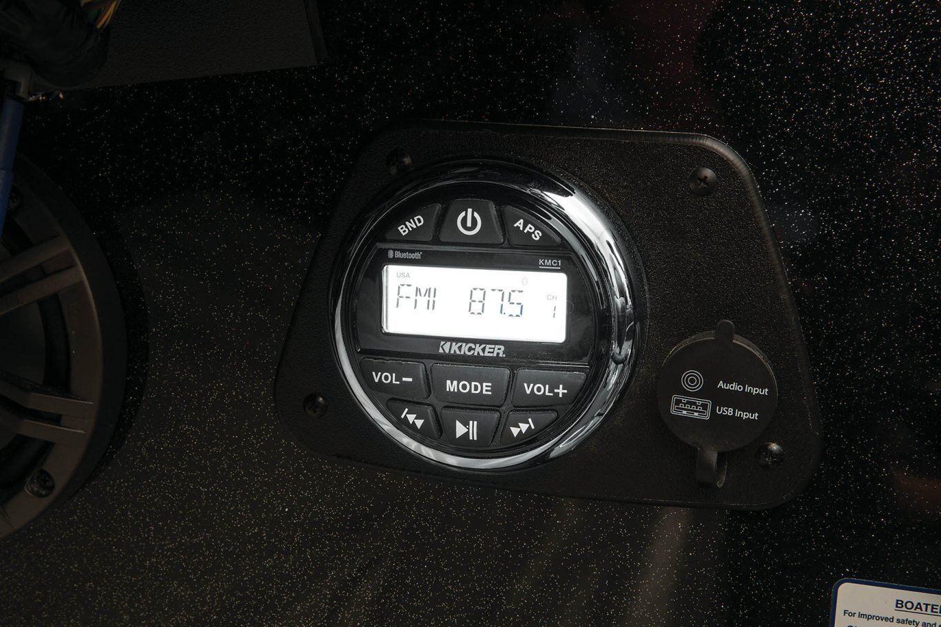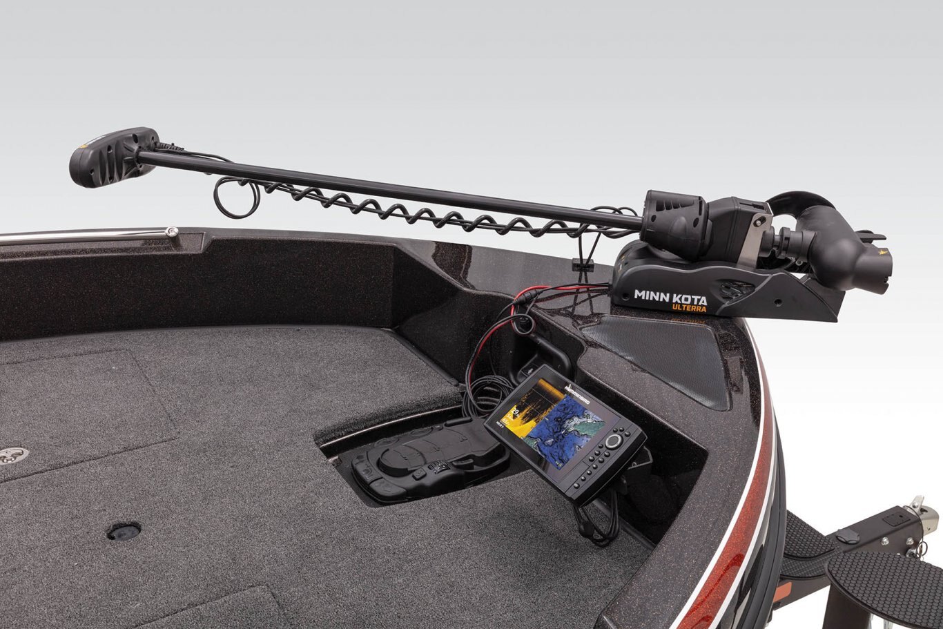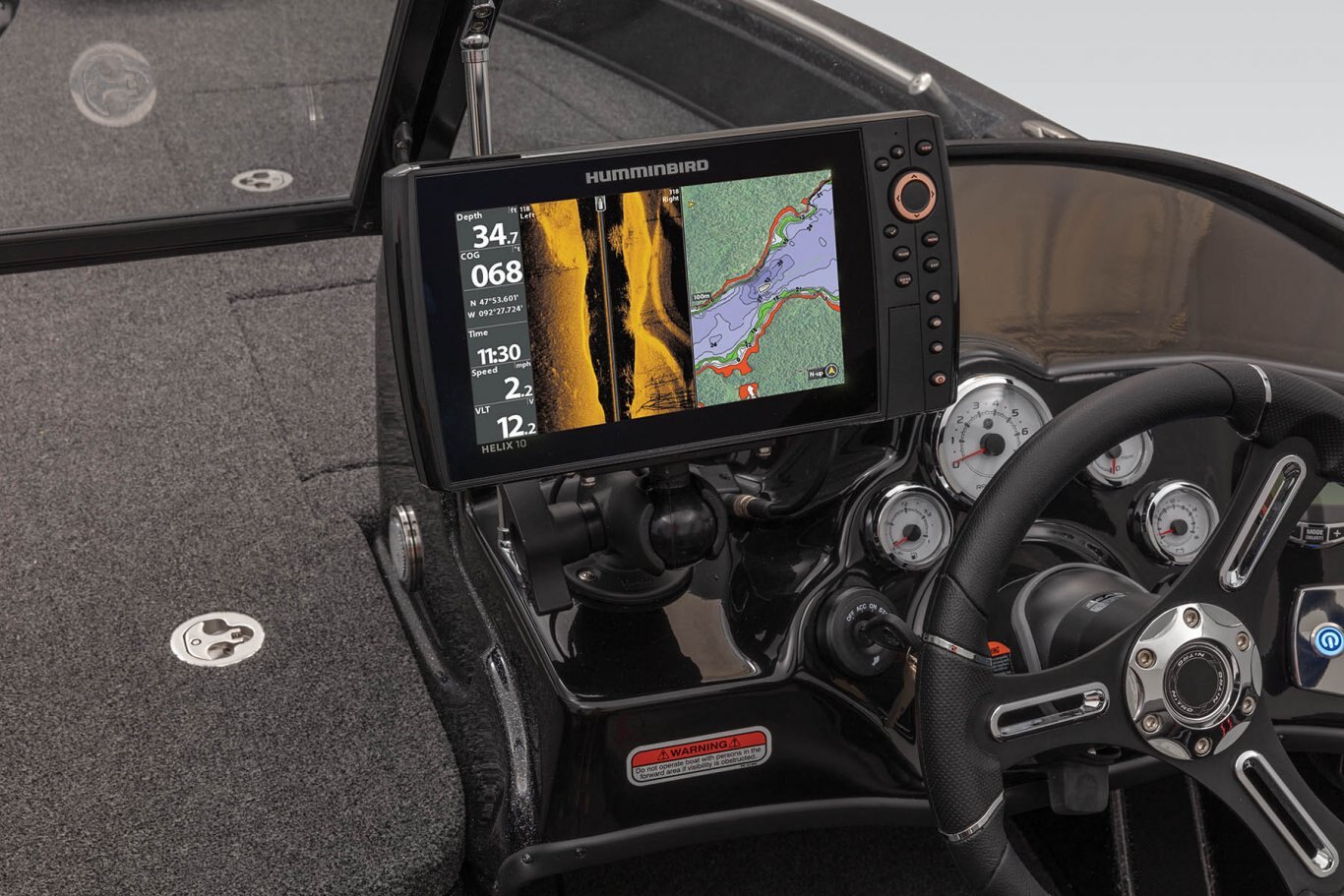 Bow Humminbird® HELIX™ 9 DI G3N gimbal-mounted fishfinder w/MEGA Down Imaging, CHIRP Digital Sonar & GPS Console Humminbird® HELIX™ 10 SI G3N RAM®-mounted fishfinder w/MEGA Down Imaging, CHIRP Digital Sonar & GPS Minn Kota® Ulterra™ 36V, 112-lb. (50.80 kg) thrust, 60" (1.52 m) shaft trolling motor w/MEGA Down Imaging & i-Pilot® Link™ 3-way Ethernet communication between fishfinders & trolling motor SmartCraft® gauges Bimini top (factory installed) Walk-thru windshield (or optional plexiglass windscreens) Factory-applied keel protector KICKER® KMC1 Bluetooth®-capable stereo system 4-bank, 40-amp battery charger Retractable transom trailer tie downs