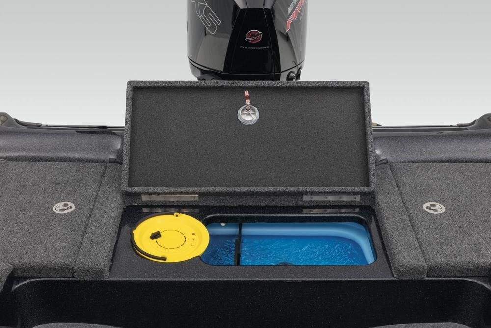 - Aft 26-gal. (98.42 L) insulated, rotomolded GUARDIAN™ anti-slosh livewell w/removable divider, bait bucket & rounded corners