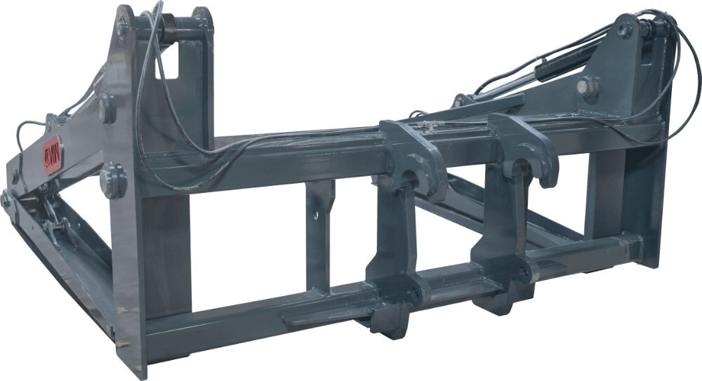 Loader Pipe Grapples are used in oil and gas industries where pipe handling is a key role on the job. The NM pipe grapple is built with high visibility design that increases operator comfort and efficiency. The pipe grapple gives you greater application flexibility with full-width tine adjustment. The two-stage hydraulic grapple is designed to clamp down evenly on the entire row of pipe or poles.