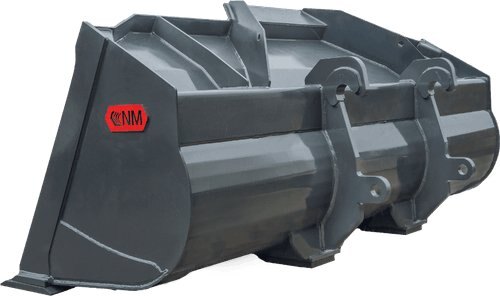 NM GP buckets are built with high strength steel and have additional AR-400 steel wear plates including the side cheek plates, side cutters, bottom wear plates, and skid pads. |