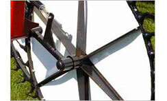 Compression dampening spring assemblies provide flotation for each individual rake wheel. You'll notice the smoother operation when working on hilly or bumpy ground. |