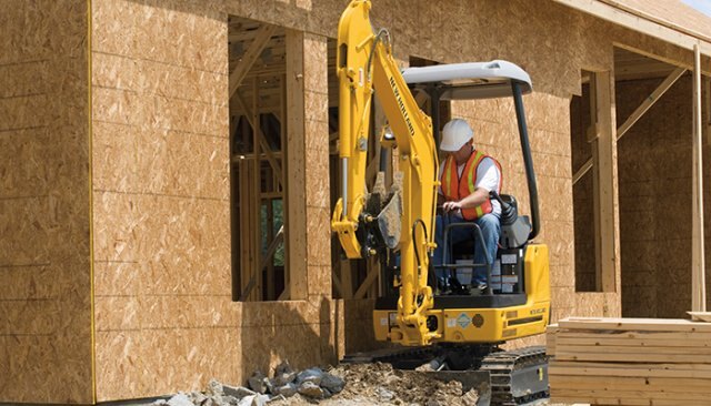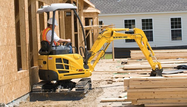 New Holland compact excavators are designed to work near building structures. All standard model configurations provide zero tail swing for access to the most restricted areas. |