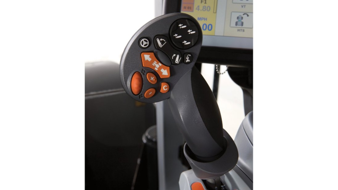 BALANCING FUEL ECONOMY AND PRODUCTIVITYWhen working in Auto and Cruise modes, use the droop control button located to your right to reduce the engine speed needed to achieve maximum travel speed. The result: you reach 31 mph at much lower engine revolutions, saving you fuel. In PTO mode, you can regulate the acceptable reduction in PTO speed before forward speed is reduced. Perfect when operating in a field of uneven soil types with areas of compaction. | |