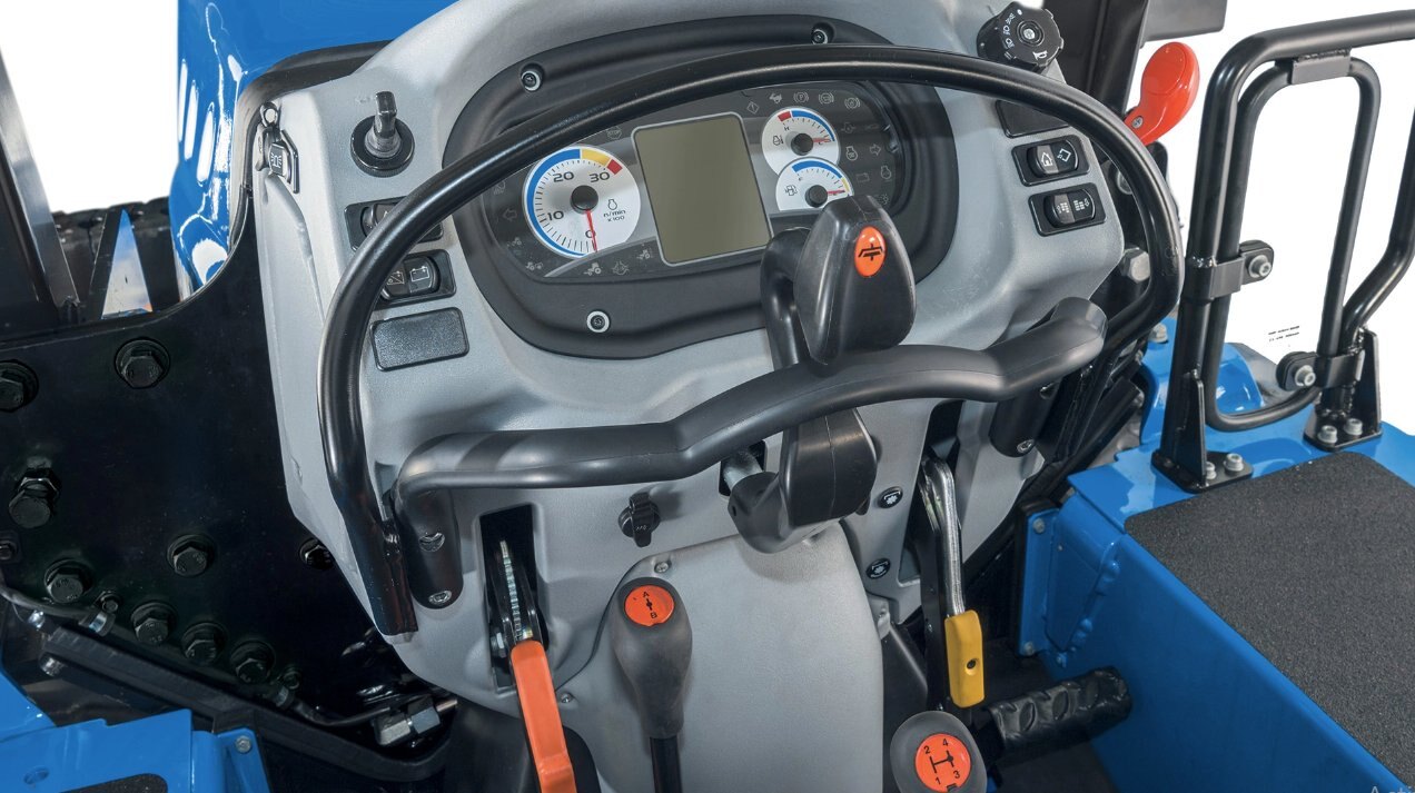 OPTIONAL STEERING-O-MATIC PLUS SYSTEMThe patented optional Steering-O-Matic™ Plus system with Full Drive™ gives you one-hand control of steering and the drive system. The one lever incorporates six functions – clutch, neutral, left turn, right turn, left brake, right brake – and is servo assisted to reduce effort. Just push the multi-function lever forward to drive, and left or right for lateral movement. The Full Drive system allows you to brake the track for tighter turns. This quick, accurate steering is ideal for work in high-value crops. |