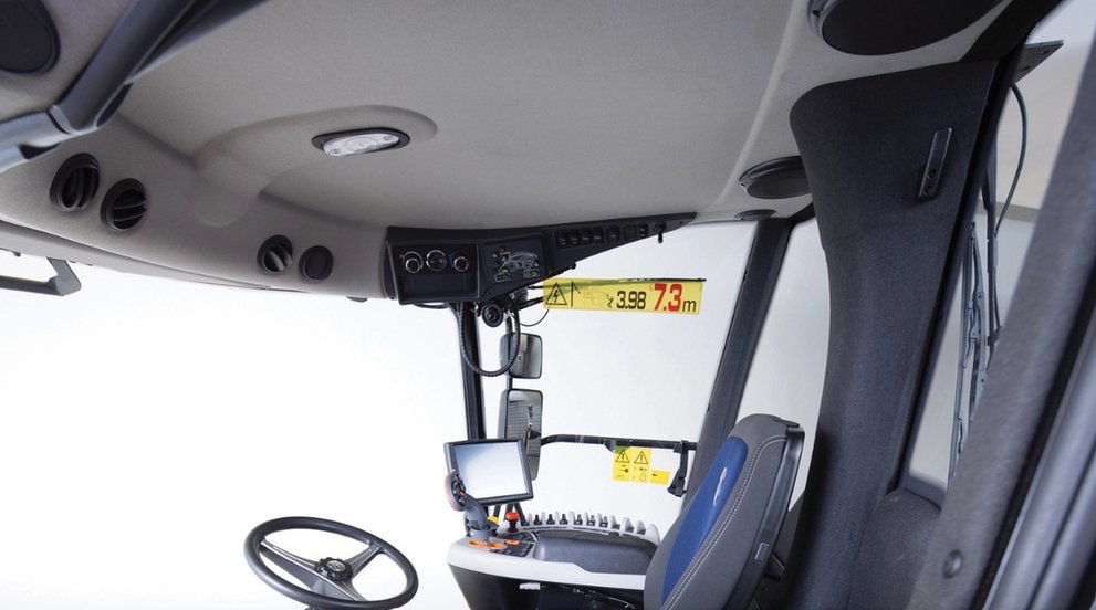 PRECISION AND EASEYou stack bales in comfort and with precise control from the quiet, iso-mounted Stackcruiser® cab. Sit in the air-ride, adjustable swivel seat featuring lots of legroom thanks to the design of the tilt steering column and right-hand control console. | |
