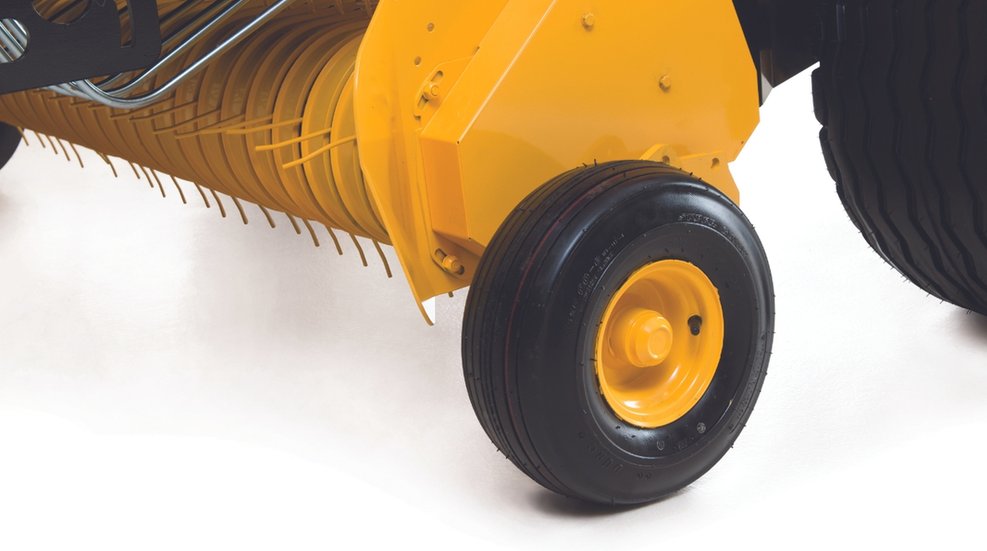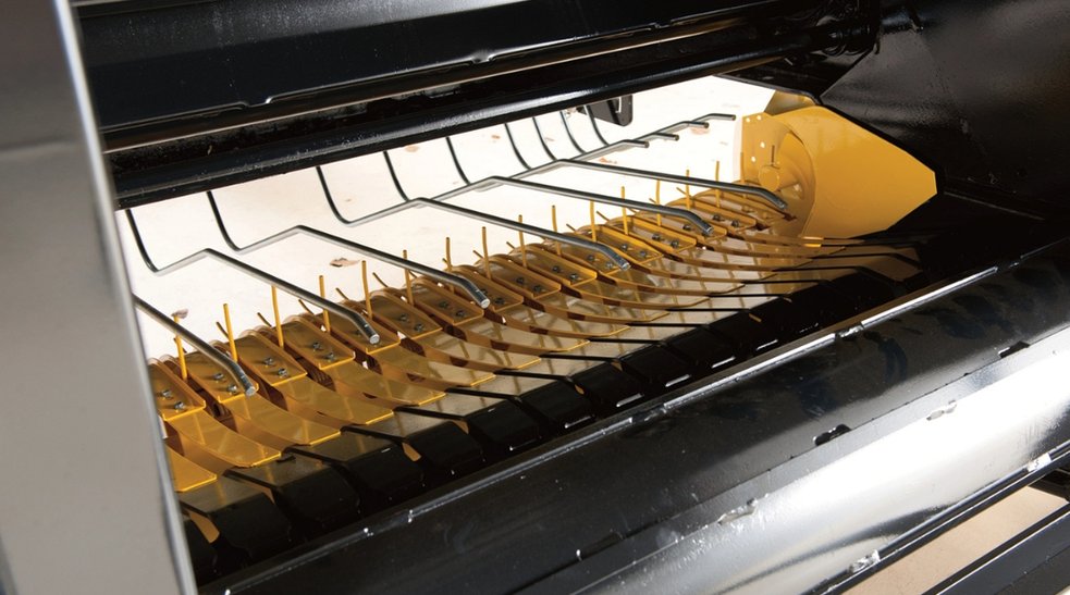 MORE TINES FOR A CLEAN SWEEPFour tine bars with closely spaced tines across the full width of the pickup ensure a clean sweep and even feeding of the swath into the bale chamber. Two stub augers create well-packed bale edges. | |