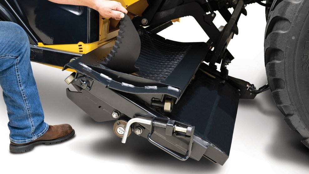 WIDEST RANGE OF CHUTE OPTIONSNo matter which type of chute you choose, bales drop more gently to the ground, thanks to the extended bale chamber. A single-piece roller bale chute comprised of all rollers allows the bale to glide effortlessly out of the bale chamber to the ground. The deluxe, industry-exclusive, soft-drop, two-piece roller bale chute features a tilt-table design for gentle handing of heavy bales for fewer broken strings. | |