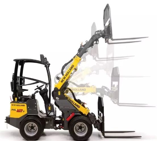 Jobsites and tasks requiring heavy machinery power delivered through a compact package can turn to New Holland's small articulated loaders.The ML12T model showcases a lifting capacity of 2,425 lbs (1100 kg), maximum tipping load capacity of 1,650 lbs (750 kg) and lifting height of 111 inches (2820 mm).