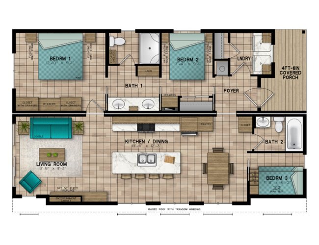 Unit Details3 bed | 2 bath | 533 sq.ft + 438 sq.ft |