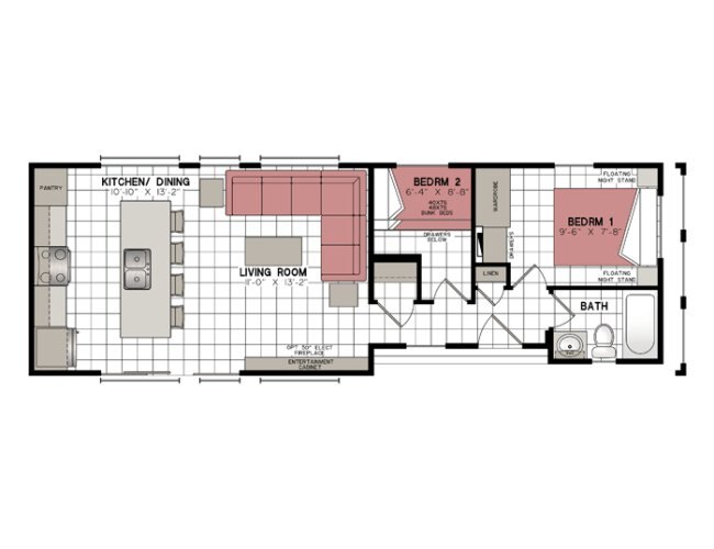 Unit Details2 bed | 1 bath | 539 sq.ft |