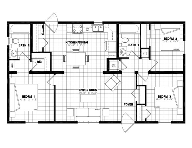 3 bed | 2 bath | 1008 sq.ft 2 Piece Unit, Manufactured Home 40' x 24' Exterior