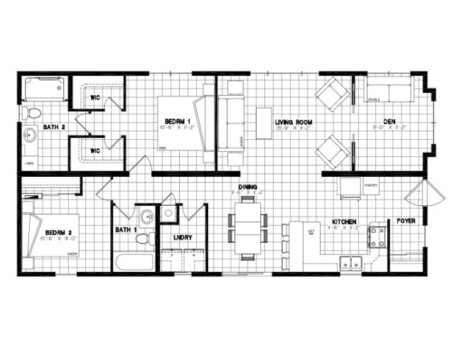 2 bed | 2 bath | 1160 sq.ft 2 Piece Unit, Manufactured Home 48' x 24' Exterior