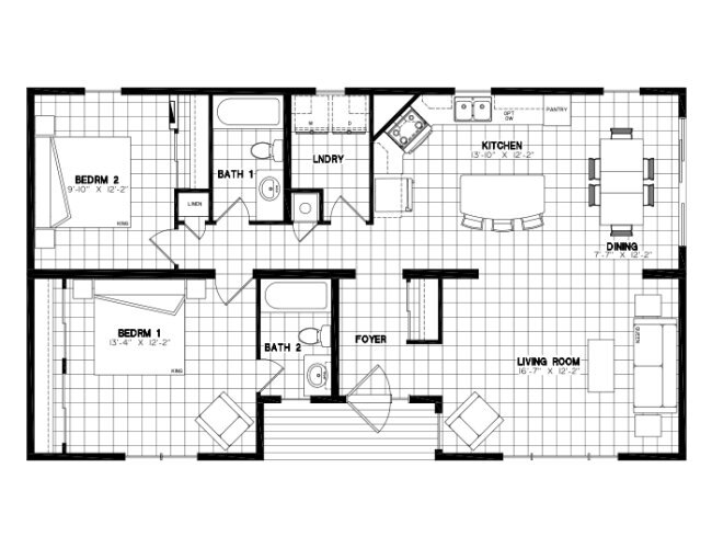 2 bed | 2 bath | 1148 sq.ft 2 Piece Unit, Manufactured Home 46' x 26' Exterior