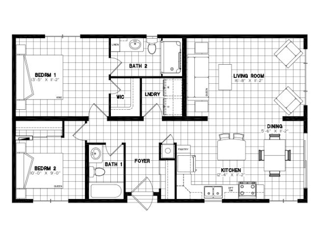 2 bed | 2 bath | 1004 sq.ft 2 Piece Unit, Manufactured Home 42' x 24' Exterior