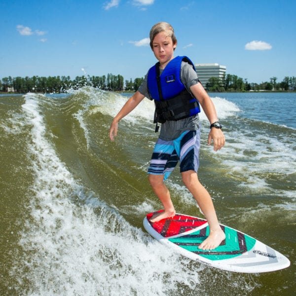 Built for Smaller Riders to learn and master the surf Built 100% with younger/smaller riders in mind, the Microwave is the perfect board to not only build the rider’s confidence and get them comfortable wakesurfing, but it also gives them everything they need to progress their surfing. Featuring a traditional skim style shape with some added width in the tail, the Microwave generates plenty of speed and forward drive making it easy for the rider to stay on the wave. Our color-coded pad simplifies learning – shift your body forward over the green front pad to go faster and bring it back over the red tail pad to slow down. | ||||||||||||||