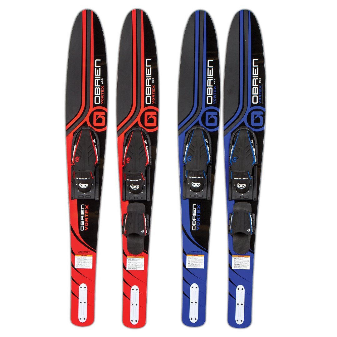 Carving turns, at minimal effor The OÌBrien Vortex Combos are our ÏBig-DaddyÓ wide-body pair. These skis are designed for super easy deep-water starts and big, carving turns, at minimal effort. The extra surface area reduces drag and provides a huge amount of lift to get bigger skiers up on plane with ease. The large surface area also allows for skiing at a slower, more comfortable boat speed. A side benefit is it takes less horsepower to get skiers on the Vortex up and out of the water; making it easier to teach deep-water slalom starts. When thereÌs any doubt about getting out of the water on a pair of skis, go with the OÌBrien Vortex Combos. These are as close to a sure thing as youÌre going to find. Available in Red or Blue. | ||||||||||