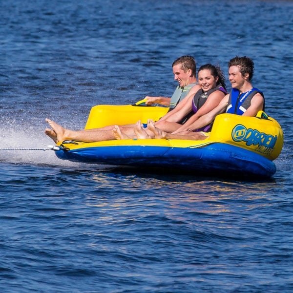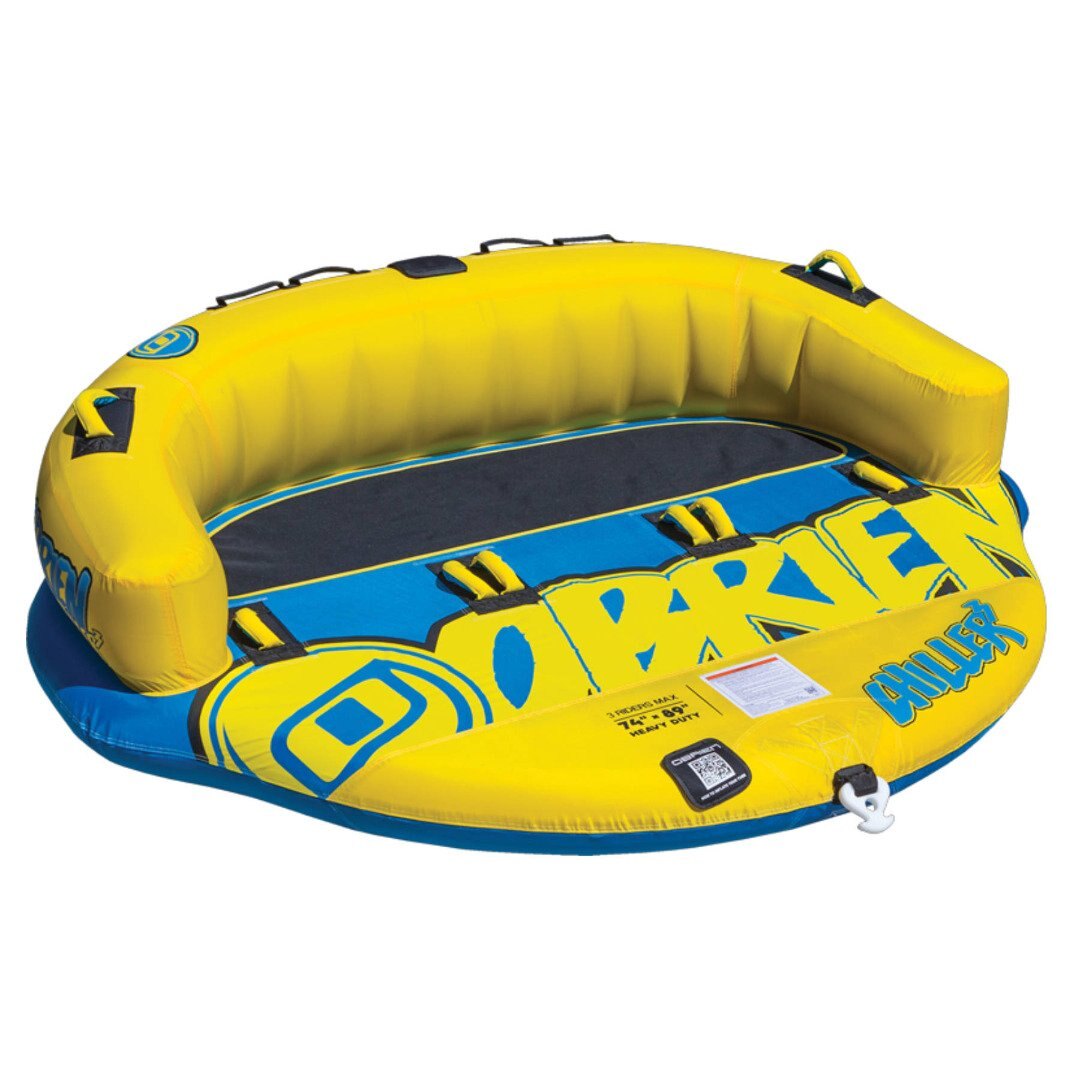 Chiller 3 ProLow Series Enjoy the thrill of being low to the water while chillin’ in a seated position on the O’Brien Chiller 3. This LowPro tube is a super fun choice for up to three riders. Its ultra-thin deck keeps the ride more exciting while making it easier to climb on from the water. So whether you like to chill or love a thrill, you can’t go wrong with the O’Brien Chiller. This OÌBrien towable boat tube has a capacity of 3 people. ONE YEAR LIMITED WARRANTY USE TENSILE STRENGTH TOW ROPE OF 3350 lbs | ||||||||||||||||||