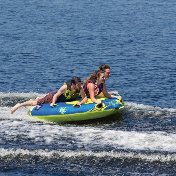 Ultra Screamer Deck Series The O’Brien Ultra Screamer provides plenty of screams and laughter while up to three riders get whipped out and bounced around to their heart’s content. The flat deck makes it comfortable to lay or kneel on, especially with the two EVA pads underneath their arms and body. The 6 handles with EVA knuckle guards allow the riders to modify their position on the tube to handle any upcoming challenges that the driver musters up. If you are looking for a three-rider deck tube that generates tons of fun for family and friends, the O’Brien Ultra Screamer is definitely the way to go. This O’Brien towable boat tube has a maximum capacity of up to 3 people or 510 lbs. Use a tensile strength towrope of 3,350 lbs. ONE YEAR LIMITED WARRANTY | ||||||||||||||||||