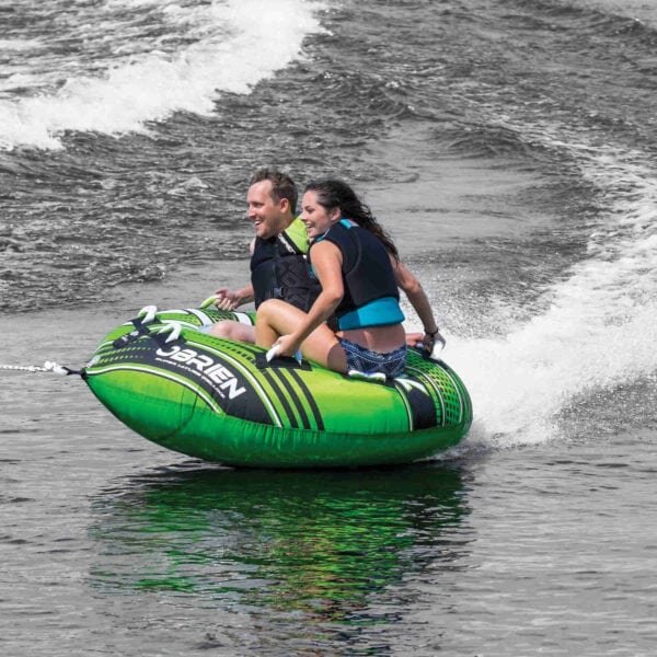This OÌBrien towable boat tube has a capacity of 2 people.