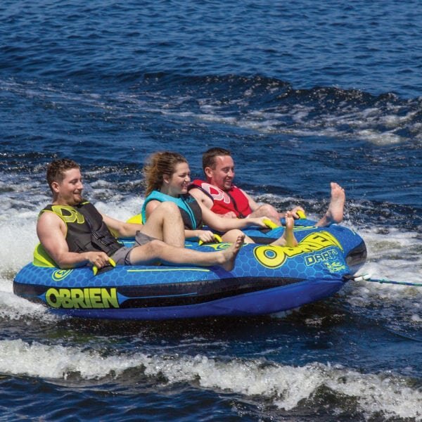 This O’Brien towable boat tube has a maximum capacity of up to 3 people or 510 lbs.