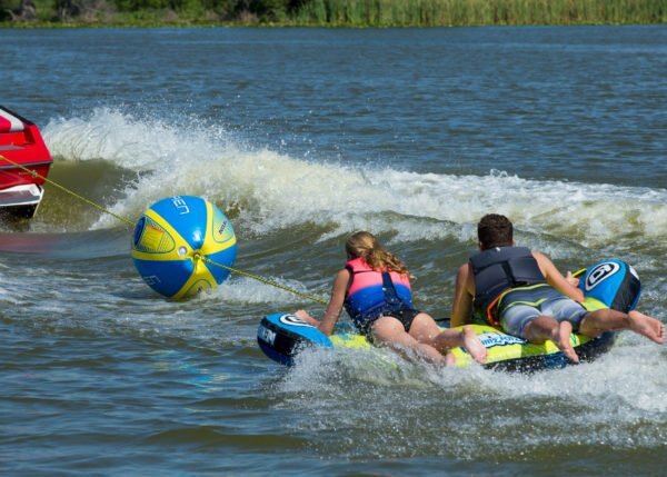 O'Brien Shock Ball Designed to keep the rope out of the water, reducing drag and increasing the gas mileage of the boat. Reduced drag provides better performance on turns and slides. Oval shape helps absorb shock on rope. For use on up to 4 rider tubes. Includes 60′ tow rope. 41″ x 22″ (Deflated) Uses a Lighting valve for rapid inflation. | ||||||||||