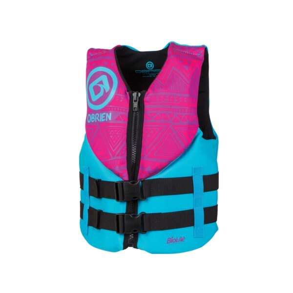 With its BioLite outer construction, the O’Brien Junior is a comfortable, eco-friendly life jacket that is perfect for teens and smaller adults. The BioLite outer material adds breathability for faster drying and makes it lighter and more environmentally friendly than traditional neoprene, while still providing exceptional comfort. The segmented panels with the front hinge and the wide armholes allow the life jacket to move with you and minimize any hindrance in range of motion. The full front zip closure and two adjustable belts make it easy to get into and dial in that snug fit to keep you secure and safe on the water. U.S. Coast Guard Approved Type III | ||||||||||||