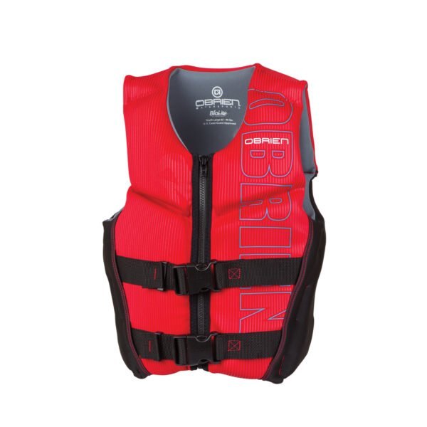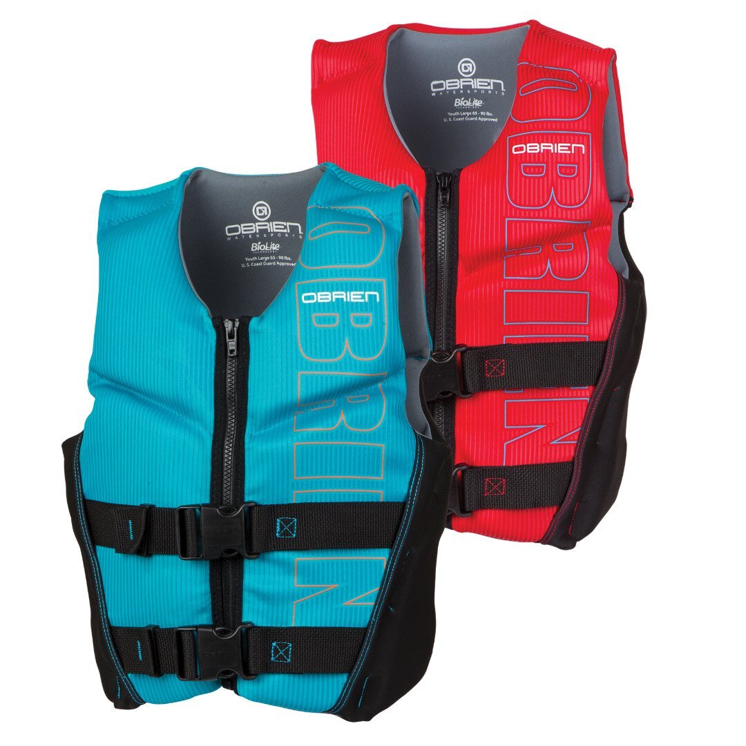 Nobody likes having their movement restricted especially kids. That’s why we developed the O’Brien Youth Flex V-Back. We took all the features that everyone loved with our adult V-Back life jacket and applied them to youth sizes. The kids couldn’t be happier. With the segmented panels, multiple front and side hinges, split V-Back stretch panel and wide armholes, kids feel unrestricted in this life jacket and parents are happy knowing that their kids are safe. The Flex V-Back sports a BioLite outer that provides a very comfortable feel, but is also lighter, dries faster and is more environmentally friendly than neoprene. On top of that, the full front zip closure and two concealed, adjustable belts makes for easy entry and an effortless way to dial in that snug fit; keeping you secure and safe on the water. So if you are looking for the ultimate youth life jacket for maintaining a maximum range of motion while still providing the safety needed on the water, you’ve found it with the O’Brien Youth V-Back. U.S. Coast Guard Approved Type III | ||||||||||||