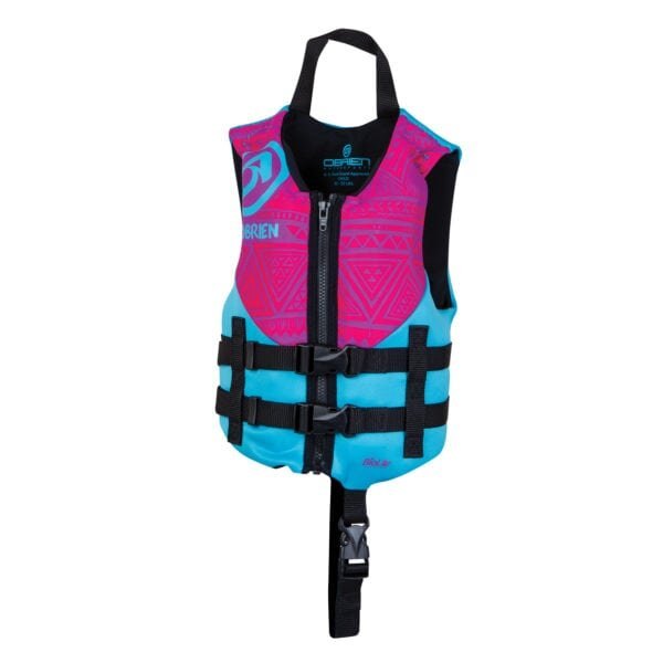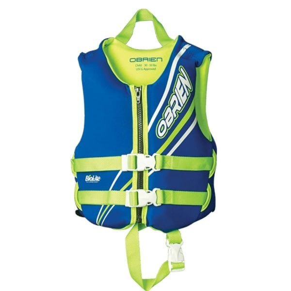 The O’Brien Child life jacket is perfect for keeping young children safe and comfortable in and around the water. Kids will love the comfort provided by the BioLite construction. The outer material is soft, lightweight, breathable, more mildew resistant than neoprene and more environmentally friendly too. ItÌs designed to not weigh down the child so they can make the most out of their time on the water. On the safety side of things, the O’Brien Child life jacket has a full front zipper and two adjustable waist straps making it easy to get into and provides a simple way to dial in that nice, snug fit necessary to keep the child safe in the water. WeÌve also included a leg loop strap and a grab strap for that added touch of security. U.S. Coast Guard Approved Type IIIFits 30-50 lbs children. | ||||||||||||