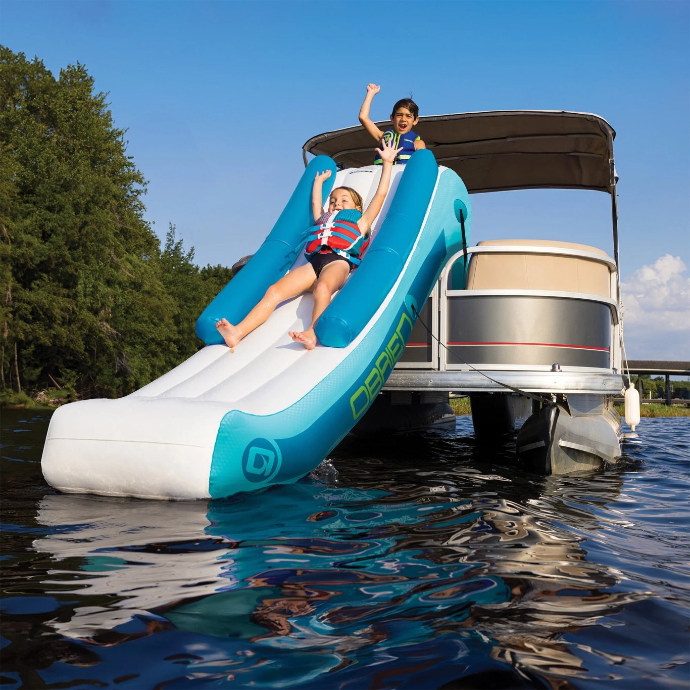 Pontoon Water PlaygroundTurn your pontoon boat into a water playground with the Pontoon Slide from O'Brien. The slide is manufactured from commercial-grade reinforced PVC material for years of trouble-free service. Molded handles and welded footsteps offer convenient, worry-free climbing. Slide includes heavy-duty anchor straps, sized to fit most pontoon boats. 200-lb. weight capacity. |