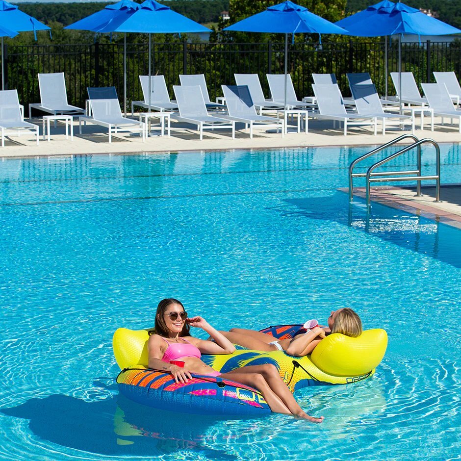 Grab a friend, take a seat, and truly enjoy your time on the water with the O'Brien Double Easy Rider pool float. This two-person float is perfect for a fun day at the beach, lake, or pool! With built-in backrests, mesh seat bases, and two cupholders, you'll have everything you need for a perfect day on the water!