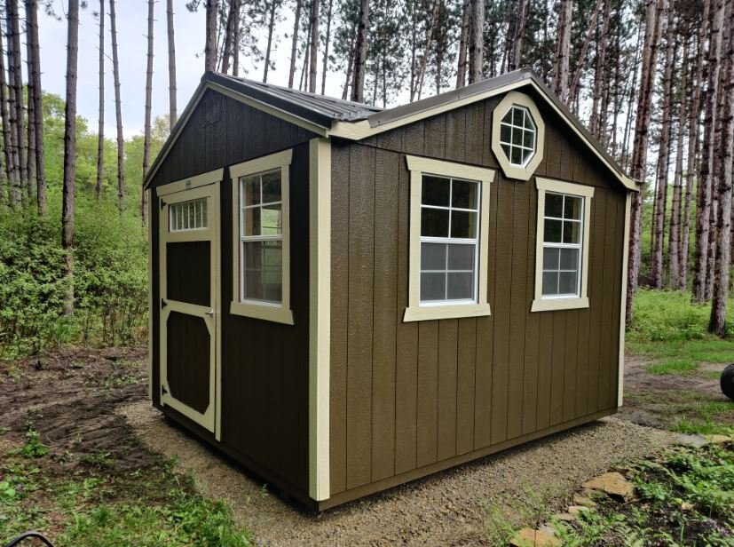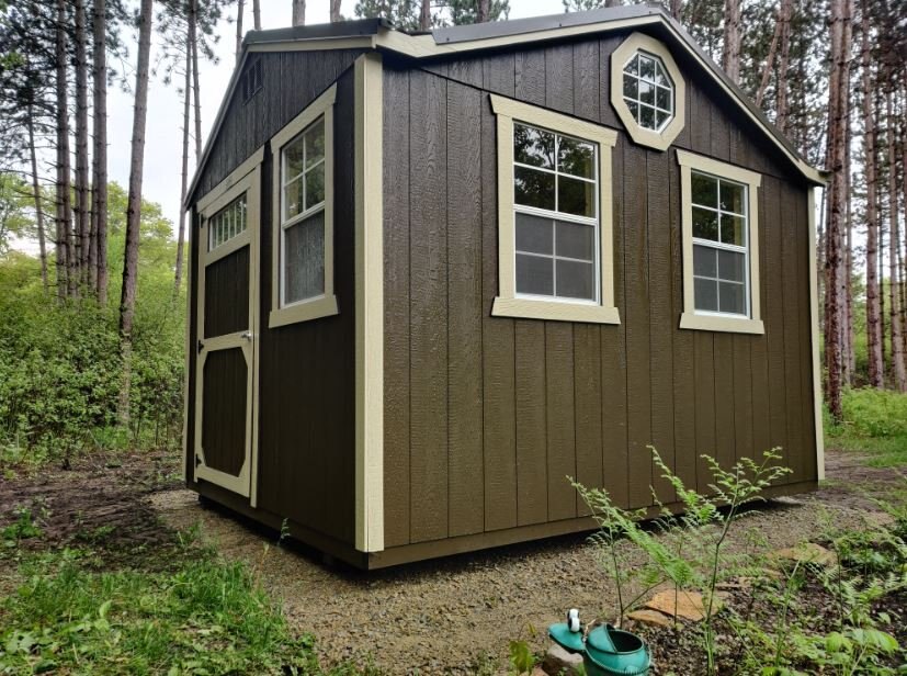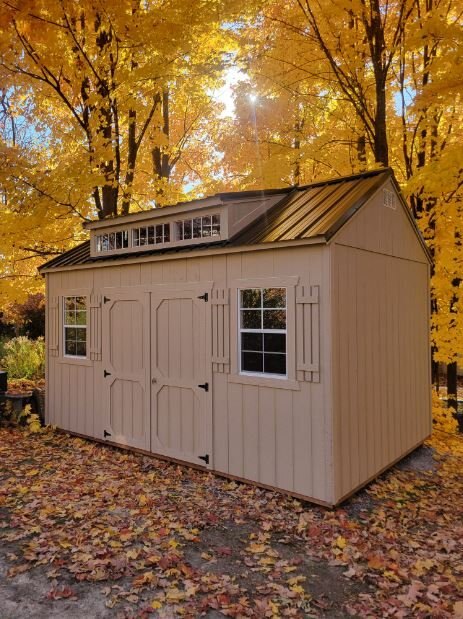 The gable style roof of the Utility Shed provides the option for increased wall height, making it feel more spacious on the inside and leaving room on the walls for taller storage shelves, lawn and garden tools, or ladders. Utility Sheds are ENGINEER CERTIFIED! If more space is needed, loft can be added to an 8ft Utility Shed. Gable or Shed Dormers can also be added to allow for increased natural light. See those package options for height restrictions. |