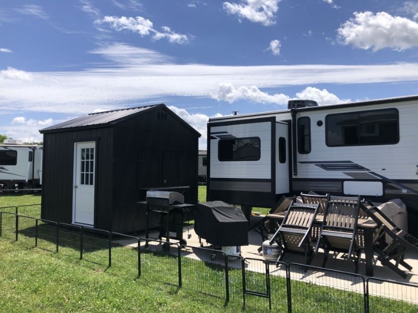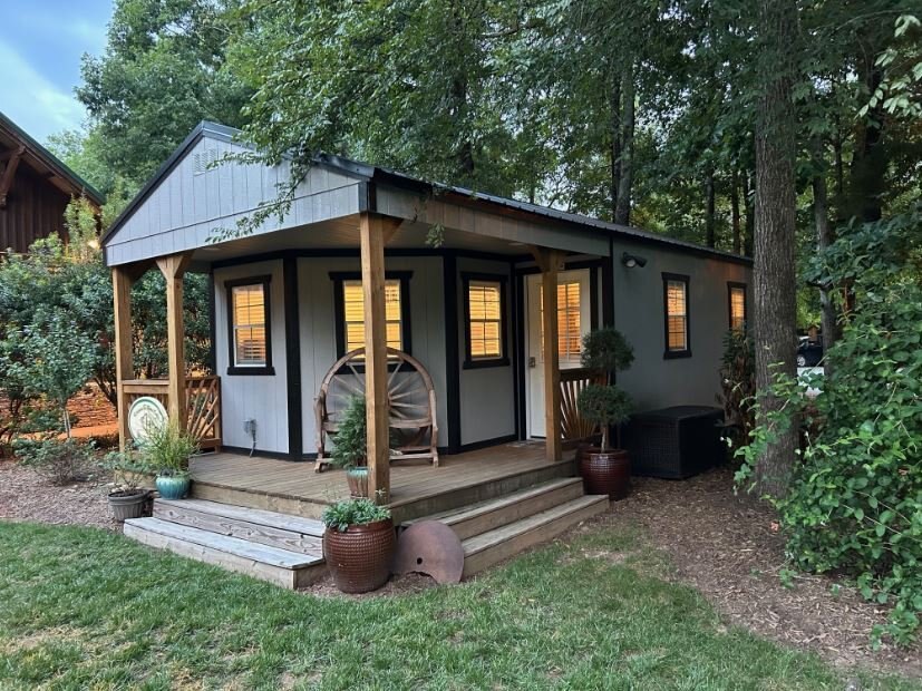 12’ wide and over buildings are measured across the eaves due to DOT (Department of Transportation) regulations. Smaller width buildings are measured from the outside corners of the walls. The total length of building includes the porch. The building must include the porch to qualify for the package price. See your local dealer for details. |