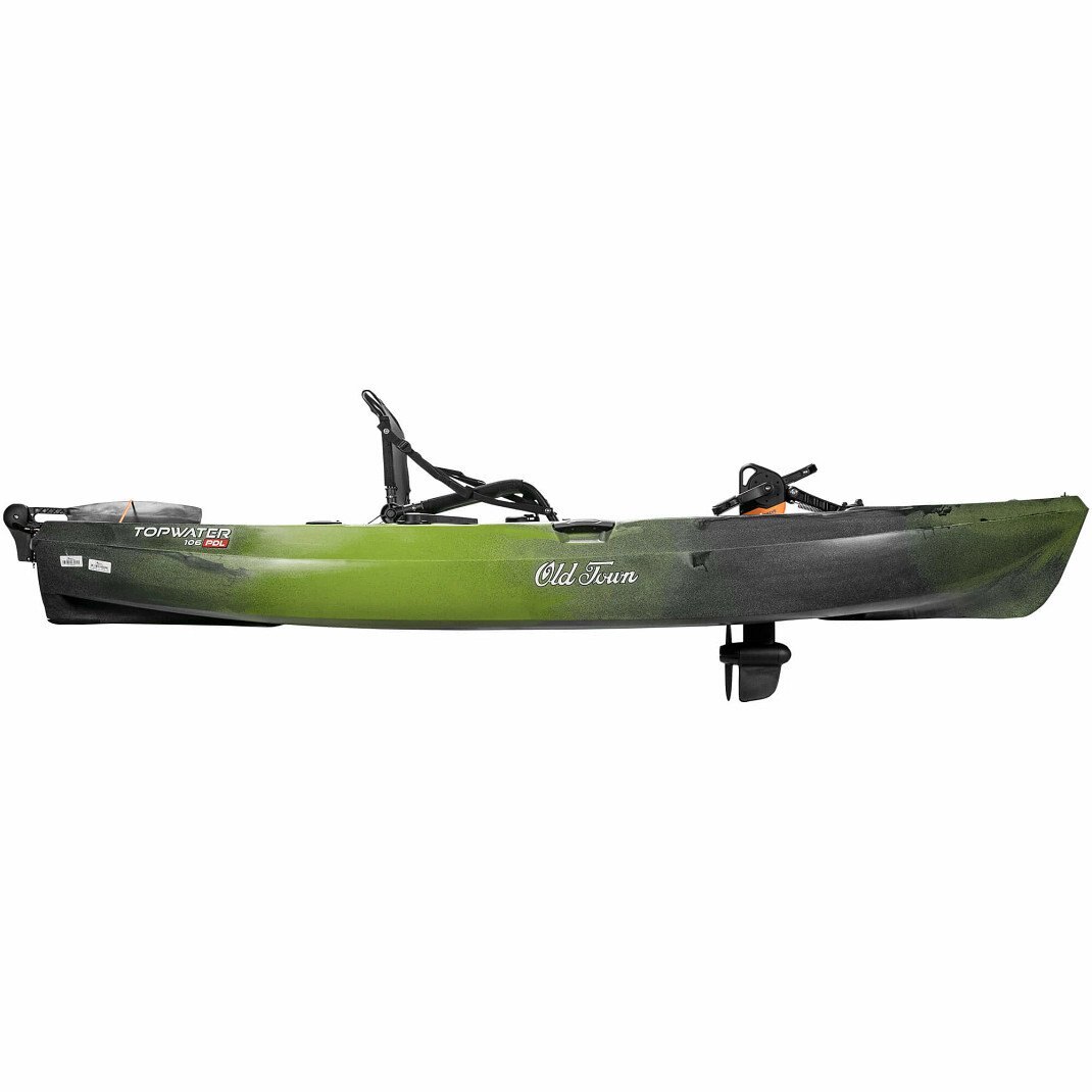 Old Town sacrificed nothing, delivering a comfortable, hands-free performance fishing kayak that’s easy to maneuver and even easier to transport. At only 10.5’ long and weighing only 100 lbs. fully outfitted, The Topwater PDL offers large fishing kayak performance, in a compact, lightweight, nimble package. A marriage of stability and performance, the Topwater's ultra-stable DoubleU™ Hull, quietly glides through any water condition while providing a stable hands-free stand-up fishing platform. Featuring the award-winning forward/reverse PDL™ Drive, the most reliable and easy-to-use pedal drive on the market, and equipped with thoughtful on-board rod & tackle management, The Topwater PDL will impress even the saltiest of anglers.