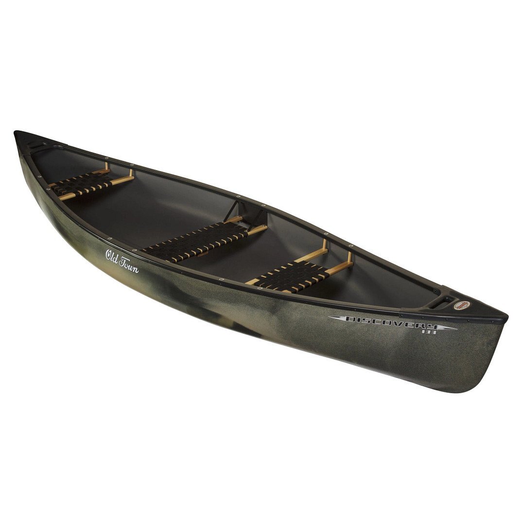 The Discovery 133 is a versatile sporting canoe with an assortment of unique features. Paddle it tandem from the bow and stern web seats, pole it solo, or row it effortlessly from the center and forward oar sockets. You can even outfit it with Old Town's motor mount and a small outboard, making remote fishing spots just minutes away. As your needs vary, the patented Discovery 133 is a dependable choice for strength, flexibility, and lightweight manageability. With our 3-layer hull construction and a keeled design, and featuring a wide beam for rock solid stability and exceptional carrying capacity, the Discovery 133 is well-suited as a fishing and hunting boat, and could be equally useful as an outdoor photographer's workboat.