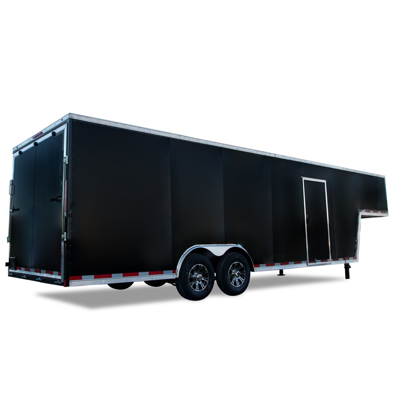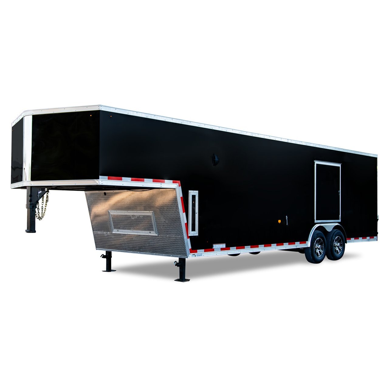 The Cargo Sport Gooseneck/Fifth Wheel is built to haul it all. The Cargo Sport Gooseneck is our entry-level gooseneck trailer, with the option to fifth wheel. This trailer’s 8.5’-wide gooseneck design in either flat or round top maximizes cargo space above your truck bed, while the V-nose model’s configuration provides all of the aerodynamics you would hope for on the open road. Built to haul everything from auto and cargo, to contracting, landscaping and even UTV. These 8.5’ wide trailers range from 28 – 53FT long.