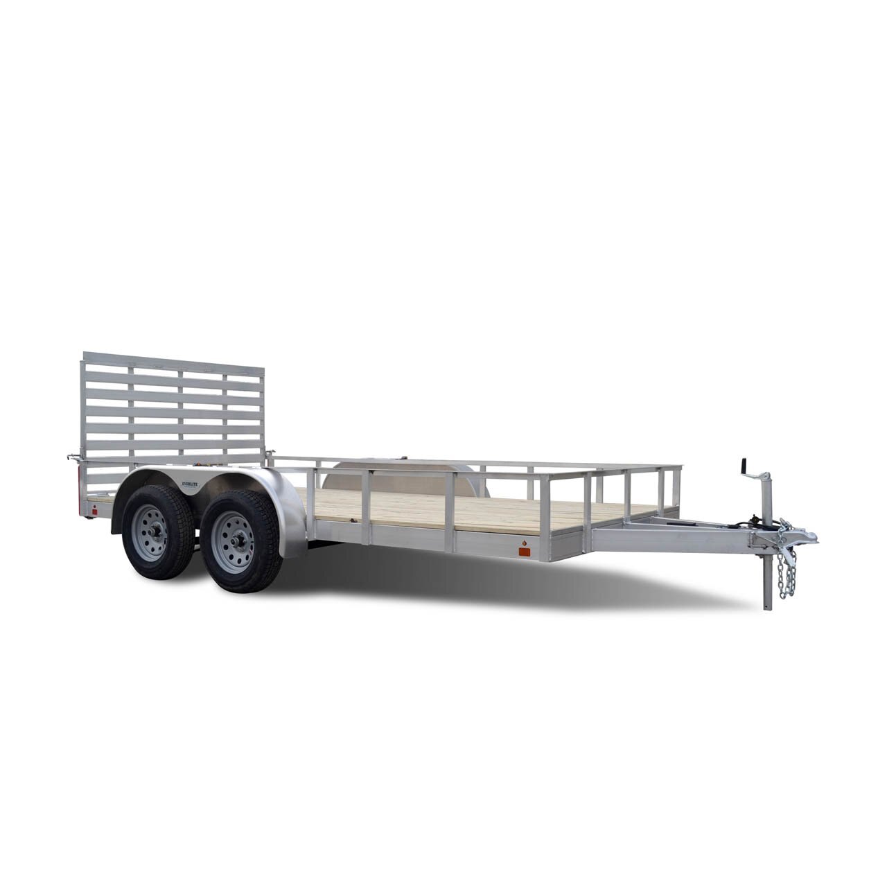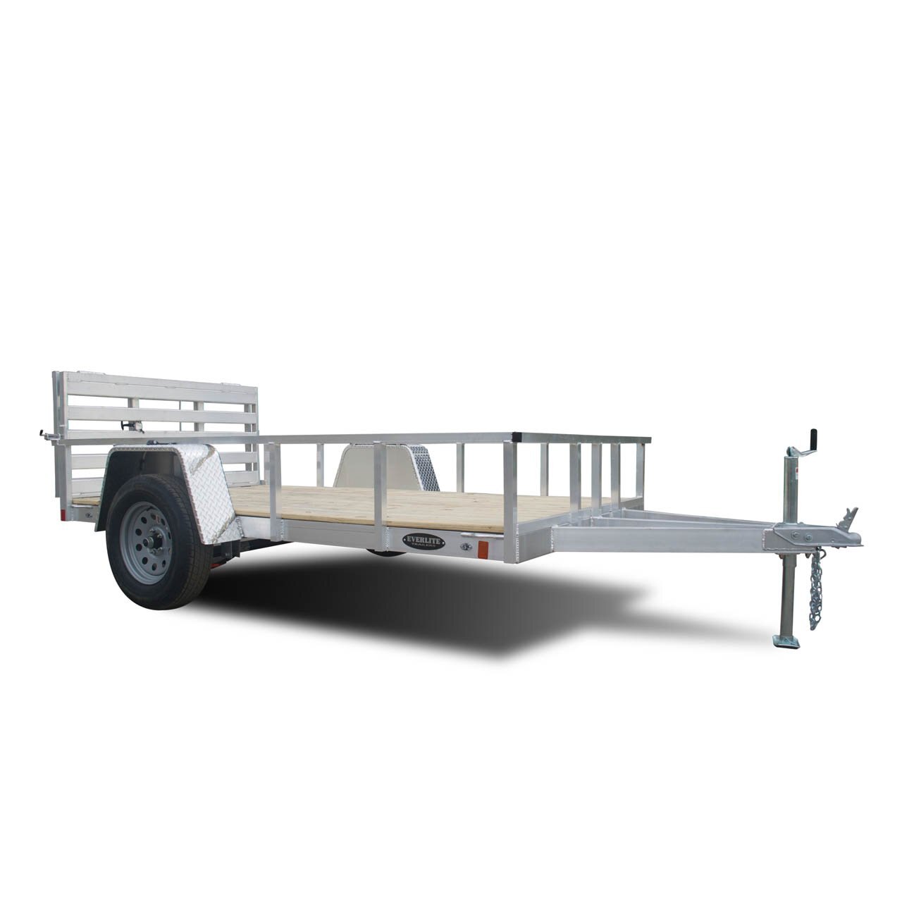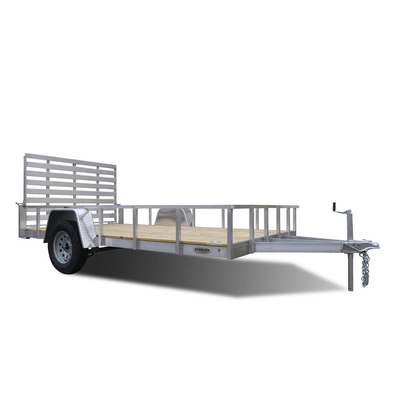 In need of an open utility trailer? Our Everlite brand offers a full lineup! Everlite open aluminum utility trailers provide maximum durability in a lightweight frame. This full brand of open utility trailers offers both single and tandem axles. The single axle model lineup includes 7 units with a variety of sizes from 60” – 78” wide and 8 – 14 ft. long. Our tandem axle utility trailers feature three sizes including 78” X 14’, 82” X 14’ and 82” X 16’. Every trailer is built with all-aluminum tube frame construction, a 3-piece tube integrated A-frame and LED lighting. Our Everlite trailers are also backed with our 3-year limited warranty. Visit the Everlite website to see more standards and features including electric breaks, 15” radial tires, ATP fenders and more. |
