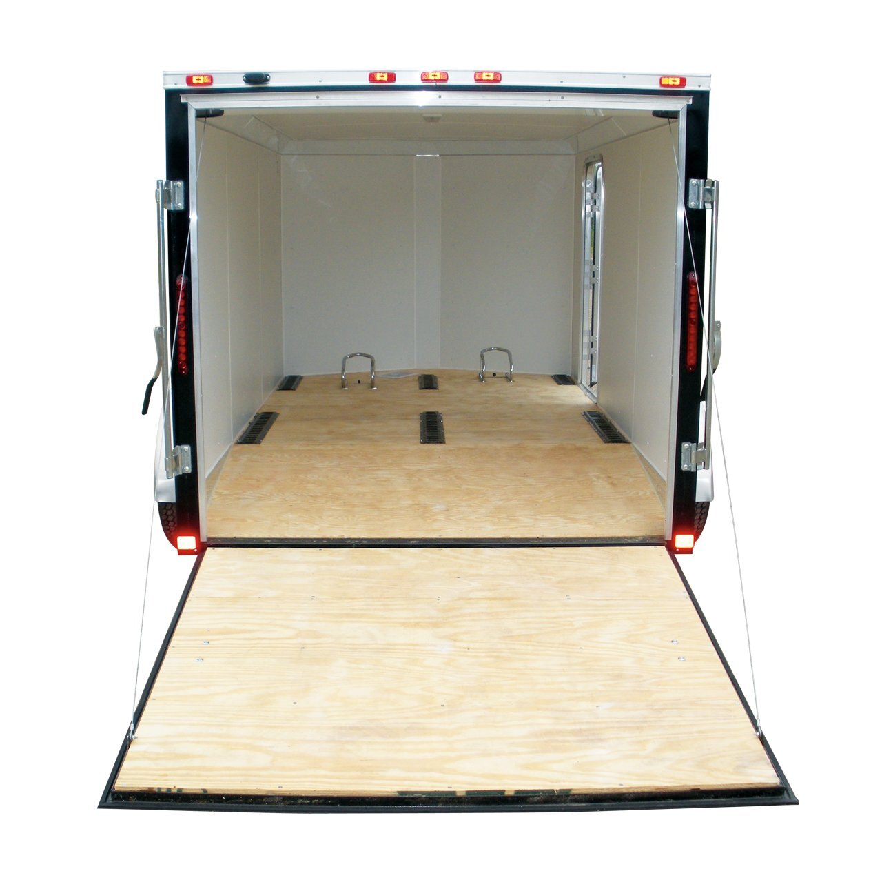 The Journey Motorcycle Trailer is 7.5’ wide of pure fun. Whether your calling is with motorcycles, dirt bikes or ATVs, the Journey Motorcycle Trailer is for you. This mid-line trailer is affordable and packed with standard features. With lengths available from 12- 16 ft, these V-nose trailers all come standard with 24” tall aluminum stone guard, LED lighting, aluminum fenders, floor e-tracks, wheel chocks and more. Expect the same structural build that our Pace American trailers all offer, with a little more fun for those motorcycle and outdoor enthusiasts. Spring assist ramp doors make for easy loading/unloading, with a limited 3-year warranty to back it all up.
