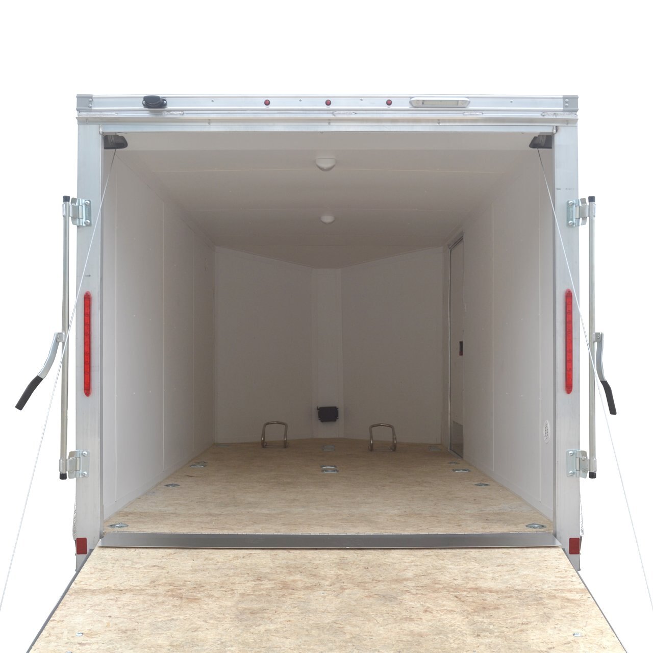 All-aluminum doesn’t mean you have to comprise on anything. These trailers offer standards including embossed aluminum stone guard, polished aluminum nose, LED lighting, a ramp door with extension, sidewall vents, heavy duty D-rings, removable wheel chocks and more!