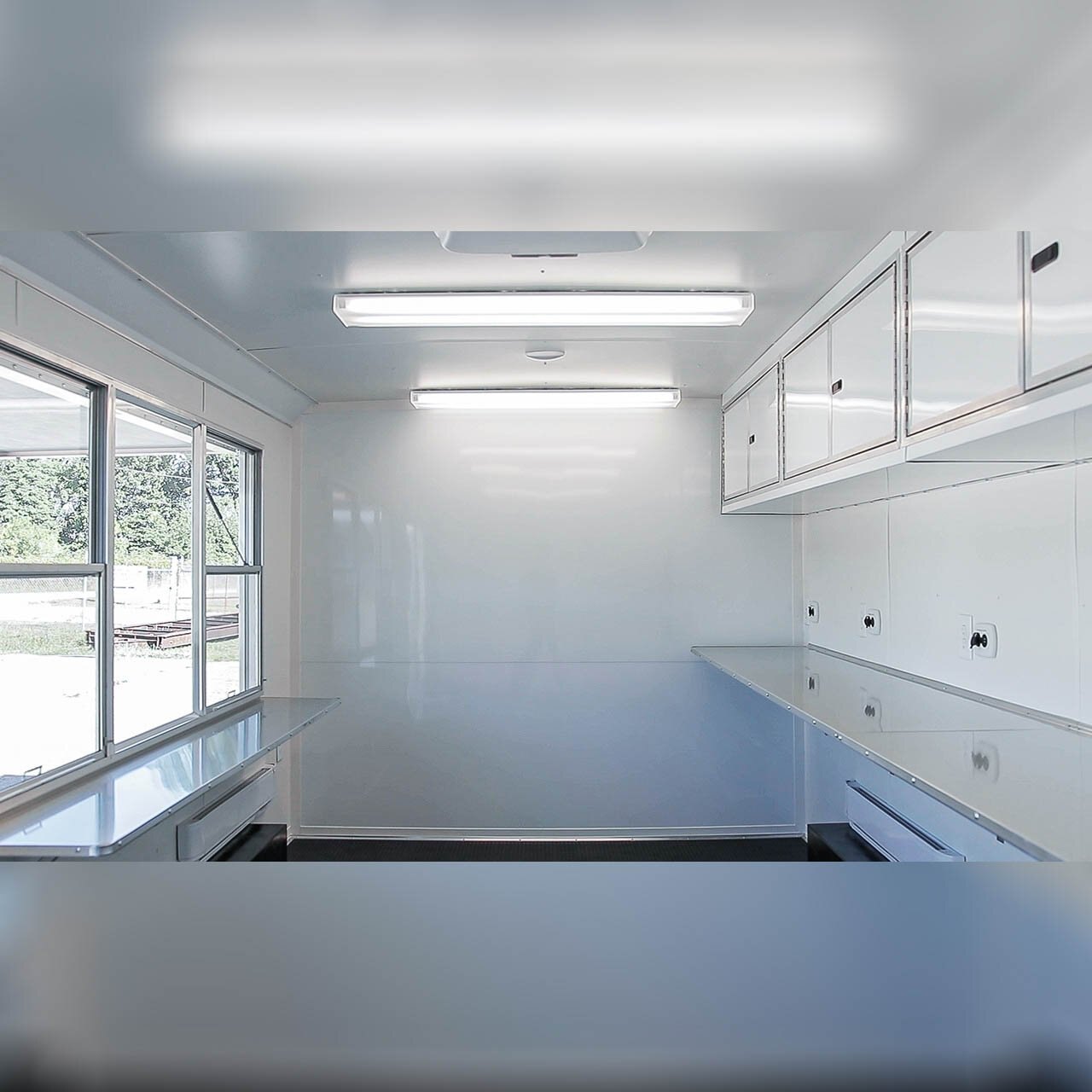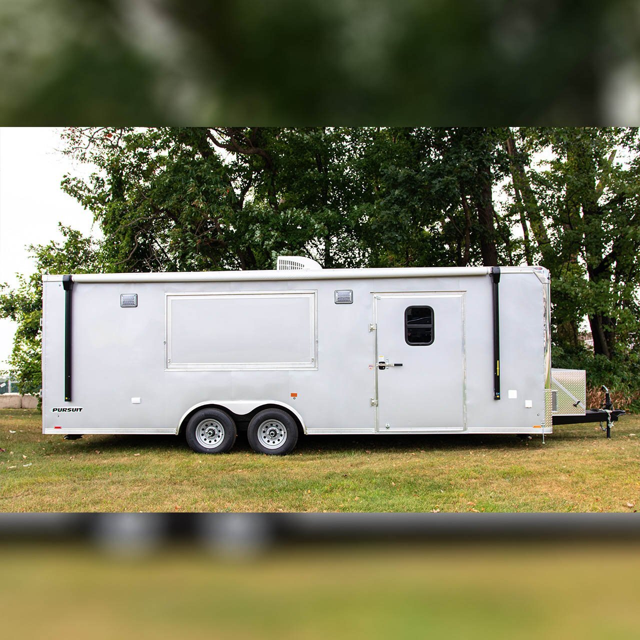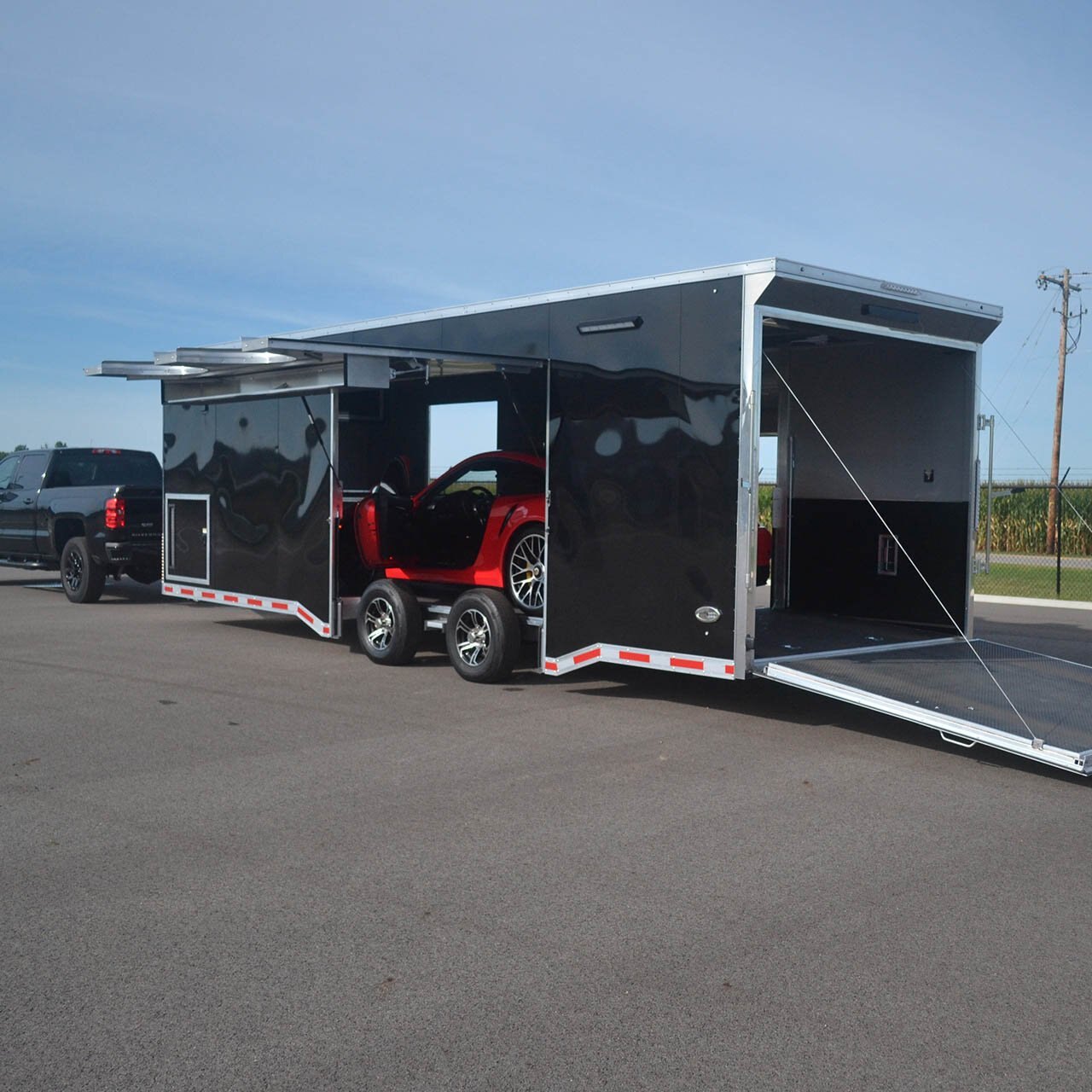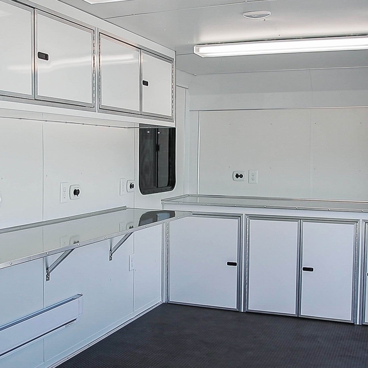 The Pursuit trailer is heavy on features and ready to race. The Pursuit 8.5’ widebody trailer is perfect for racing but is also ideal for any large haul. From contracting, landscaping and mobile workspace, to UTV, motorcycles and snowmobiles – This unit can haul it all. This high-end trailer, known for quality and value, features all of the must-have enclosed race trailer features without breaking the bank. With lengths ranging from 18’ – 32’, you can expect an extra-long list of standards. White vinyl interiors, polished aluminum corners, LED lighting, radial tires, a 2,000lb. tongue jack, aluminum accents and a ramp extension are just some of the features on the Pursuit.
