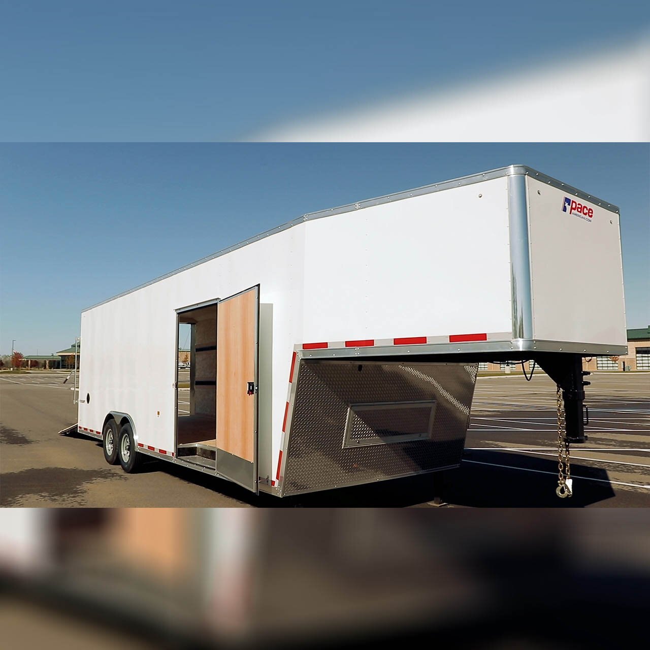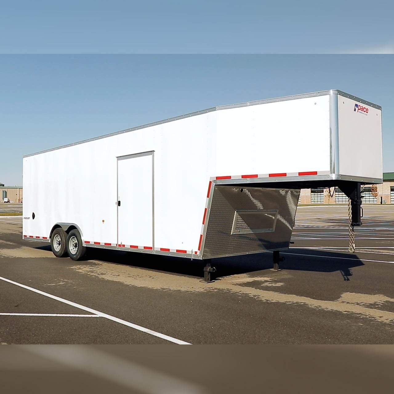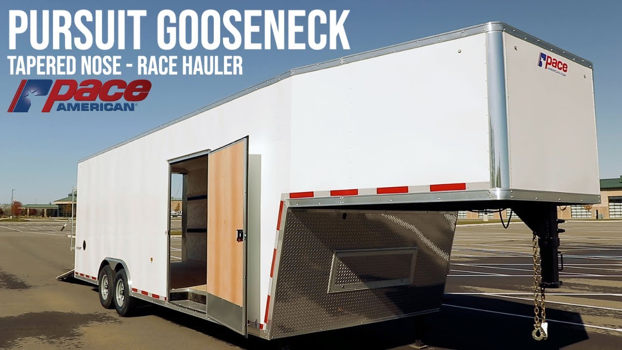 The Pursuit Gooseneck/Fifth Wheel is a perfectly balanced race trailer. The Pursuit Gooseneck/Fifth Wheel has brawn and beauty and won’t break the bank. This high-end trailer is a favorite among race enthusiasts but nearly haul it all from contracting and landscaping to UTV or motorcycle. The gooseneck design positions the weight of the trailer over your truck’s rear axle for more stability, meaning you can haul heavier loads. With common lengths from 28’ to 53’, the Pursuit Gooseneck has room for 78” interior heights, optional overhead cabinets and a 48” escape door.