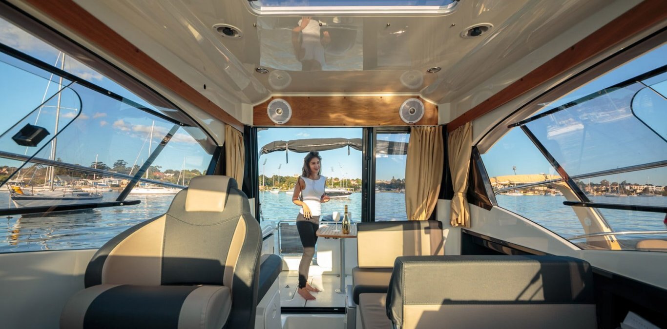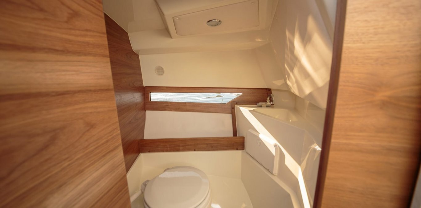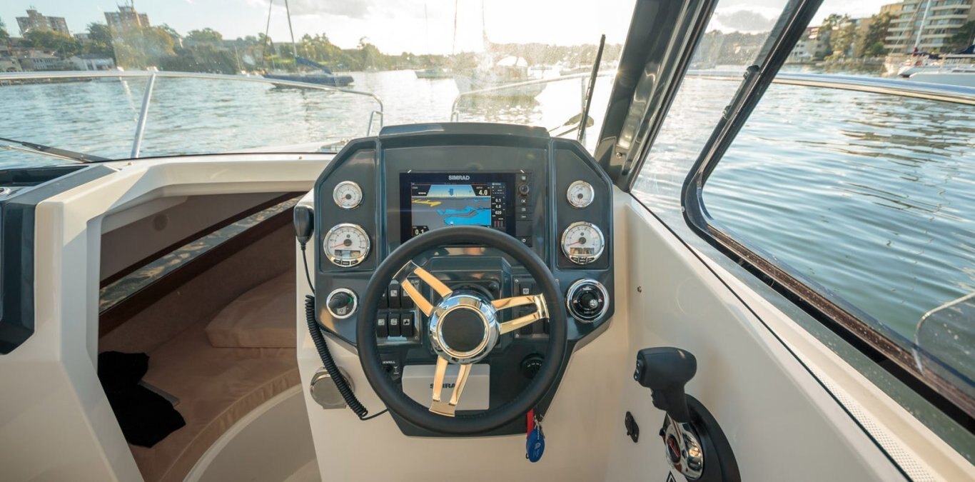 The new revolutionary GRP laminated hull of the new boat was specifically designed for high speeds, whilst maintaining the comfort of a smooth passage. The well-shaped hull with multiple spray rails permits speeds up to 35 knots with a 150 HP outboard engine and 45 knots with a 250 HP engine.