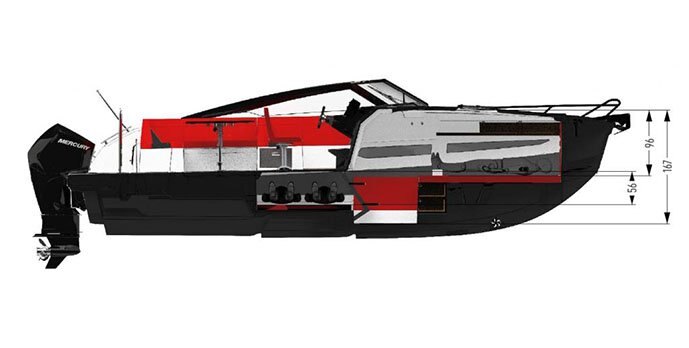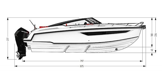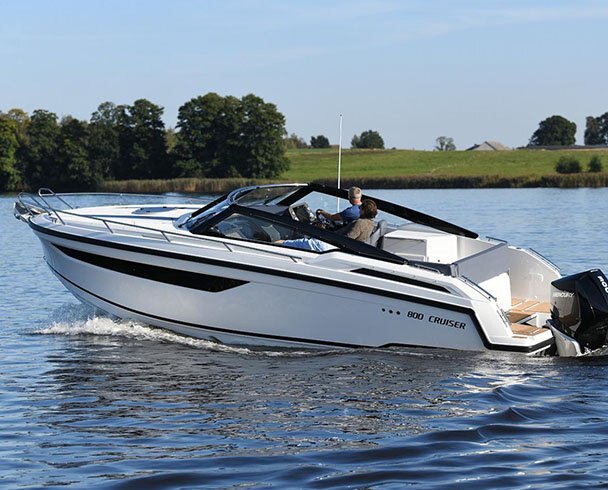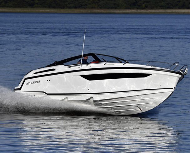 The cockpit is the most important part of a large, functional and successful daycruiser and weekend boat! The 800 Cruiser has the same cockpit layout and size as its big sister, the 850 VOYAGER Cruiser, and is mainly designed for the cruiser segment of the daycruiser market. The cockpit is large, flexible and functional, with both sunlounger and seating facing the bathing platform. Below deck, there is plenty of space and comfort for daytrips and weekend trips. The 800 Cruiser can sleep four persons and has a large, spacious toilet room below deck. The customer decides whether to fit out the boat for daycruising or for weekend trips. |