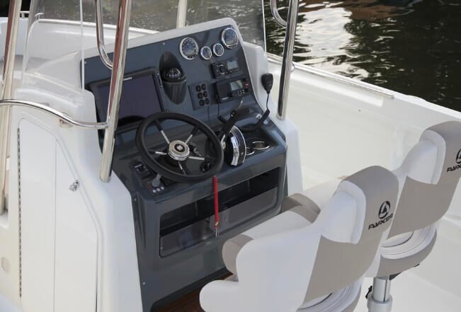 The innovative design with a large deck space makes it a perfect boat for both fishing and leisure.Built on the same hull as very popular 660 Weekend and Pilothouse the Parker 660 Open perfectly complements the range. The innovative design with a large deck space makes it a perfect boat for both fishing and leisure. The optional T-Top and distinctive hull shape create a boat of an unique design and outstanding seakeeping abilities. High bulwarks make the Parker 660 Open a very safe craft even during unfavorable weather conditions. The front table area (which can be converted into a sunbed), along with optional side benches create a comfortable environment for relaxing with family and friends. The ergonomical console can accommodate up to a 12 inch plotter screen plus a lot more useful electronic equipment. There is a large storage space inside the console which can also accommodate a sea toilet in option. To make it even more user friendly, the standard boat equipment includes a swimming ladder, rod holders and a bait tank. |