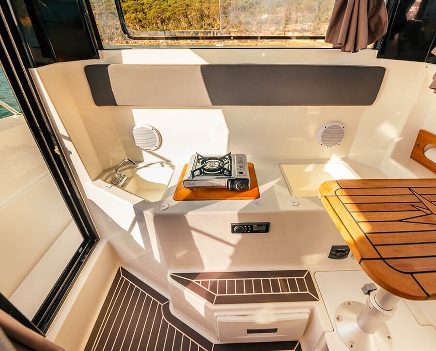Single or twin enginesWith the same high performance hull as the successful Parker 800 Weekend, the new Parker 800 Pilothouse is designed primarily for fishing and occasional cruises. The stylish pilothouse along with a secure inside helm position provides superb all round vision and comfortable seating,. The Parker’s trademark, the outside helm position, is also offered as an option. The pilothouse is accessed from the wide starboard side deck via a double sliding door ( an aft door is available as an option). A sliding window provides plenty of ventilation. There is also an enclosed WC. compartment and forward cabin. On the deck the Parker 800 Pilothouse offers a large and secure cockpit with all the features you will need for fishing. The propulsion comes from a single or twin outboard installation giving the Parker 800 Pilothouse the performance and handling qualities enjoyed by the entire Parker fleet. |