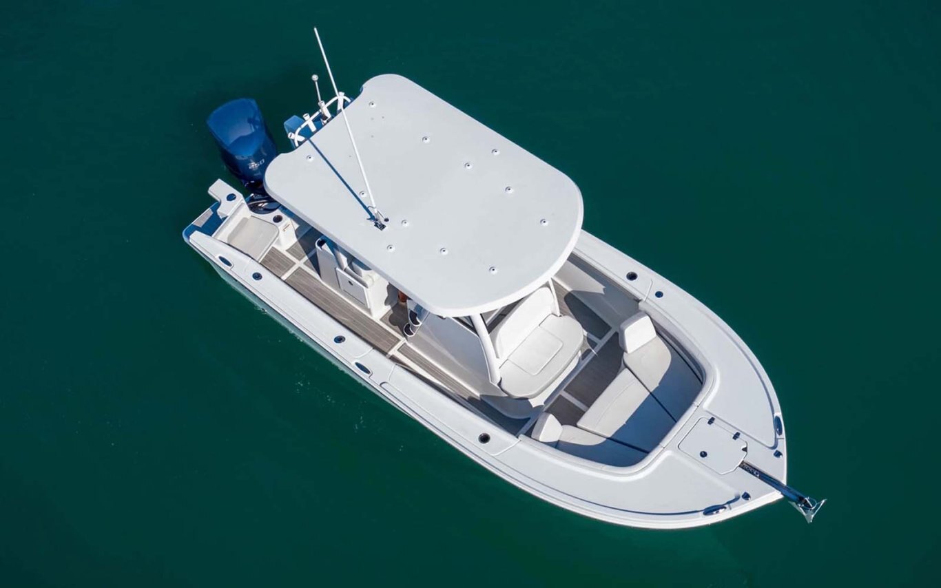 Fiberglass Hard-Top, White Powder Coated D-Channel T-Top Frame w/ 4-Rod Rocket Launcher, Electronics Box, Integrated LED Spreader Lights (1 Fwd, 2 Aft), Speaker Pods (4), LED Courtesy Lights (3)