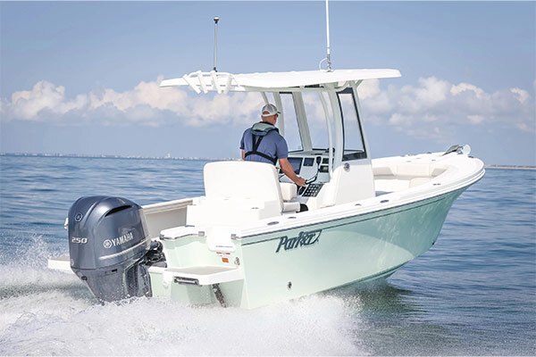 The Parker 2200 CC boat, a robust member of Parker's Center Console series, is engineered with a deep-V hull, offering exceptional stability and performance in a variety of water conditions. Designed for serious anglers and recreational boaters alike, the 2200 CC features a spacious deck layout and a range of standard amenities, including ample storage, a large livewell, and multiple rod holders. Its center console design provides 360-degree fishability and easy maneuverability. The boat can be customized with optional features such as a T-top for shade and advanced electronics for added versatility. The Parker 2200 CC is fully composite and combines durability, functionality, and comfort, making it an ideal choice for both offshore adventures and leisurely cruises with family and friends.